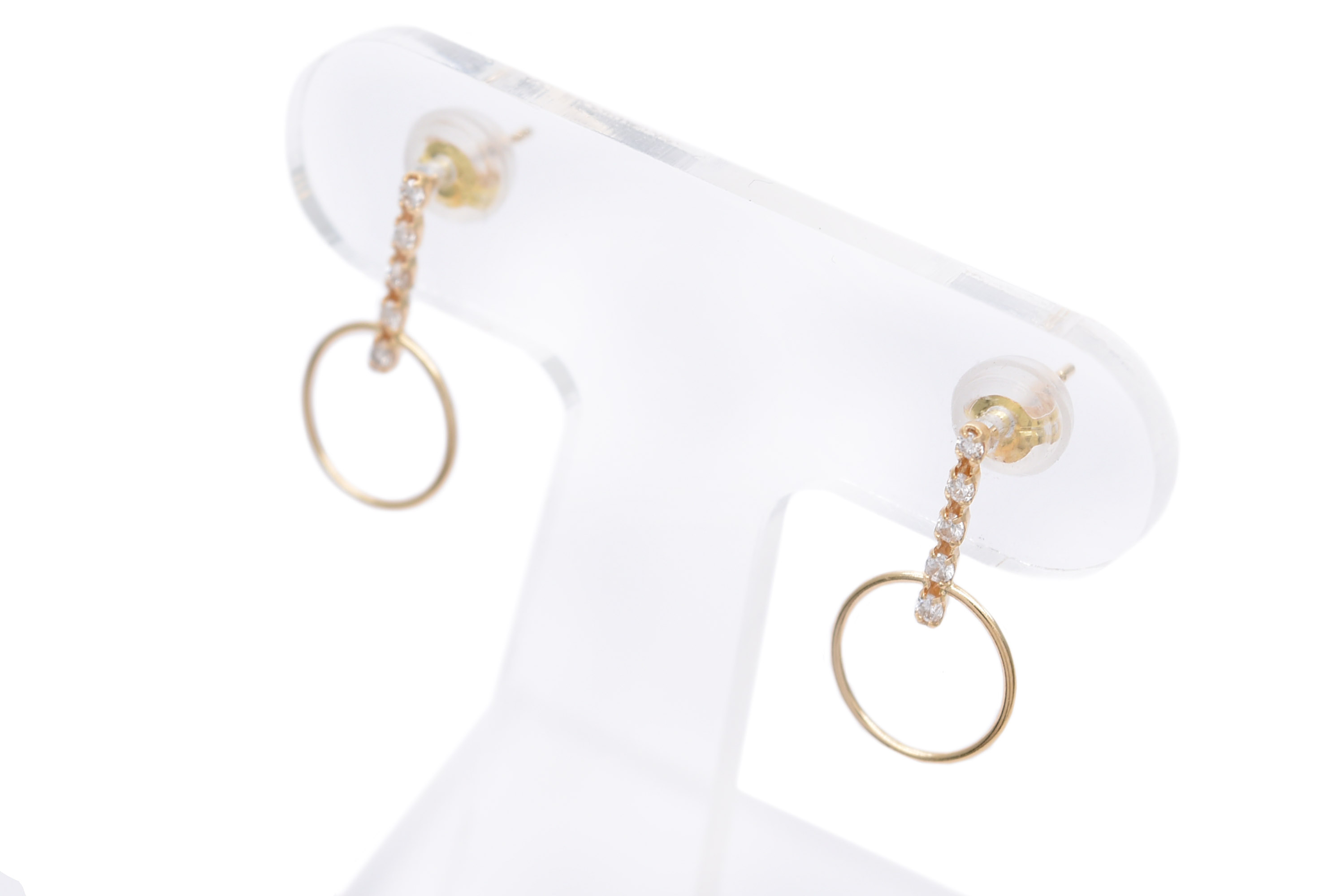 ダイヤモンドを使用したピアスです。サークルデザインのシンプルでどんなお洋服とも合わせやすいアイテムです。普段使いやオフィスシーンなどにもおすすめです。 #ダイヤモンド#サークル#丸#普段使い#お出かけ