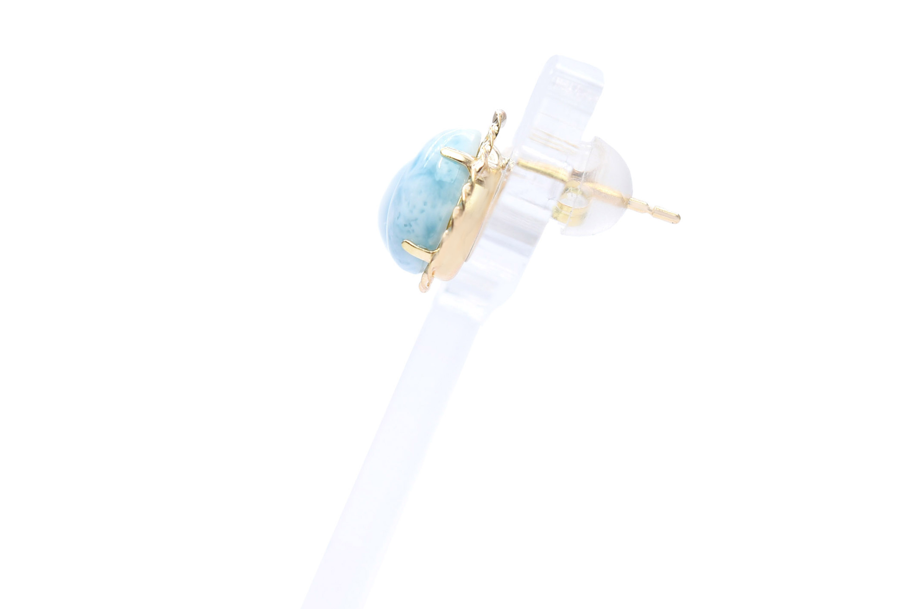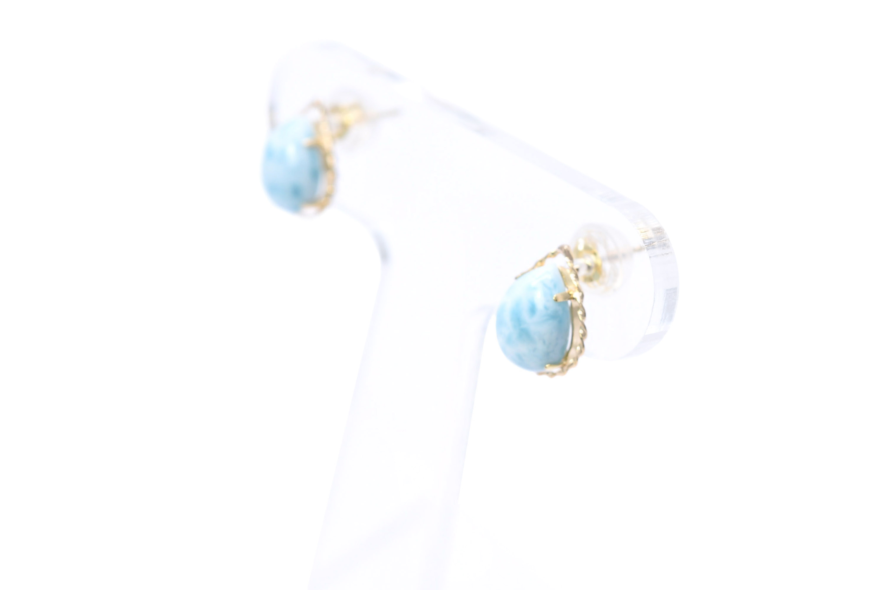 ラリマーを使用したピアスです。ドロップカットされたシンプルながらもラリマーの輝きが綺麗なデザインです。普段使いやお出かけなどにおすすめです。 #ラリマー#ドロップ#しずく#普段使い#お出かけ