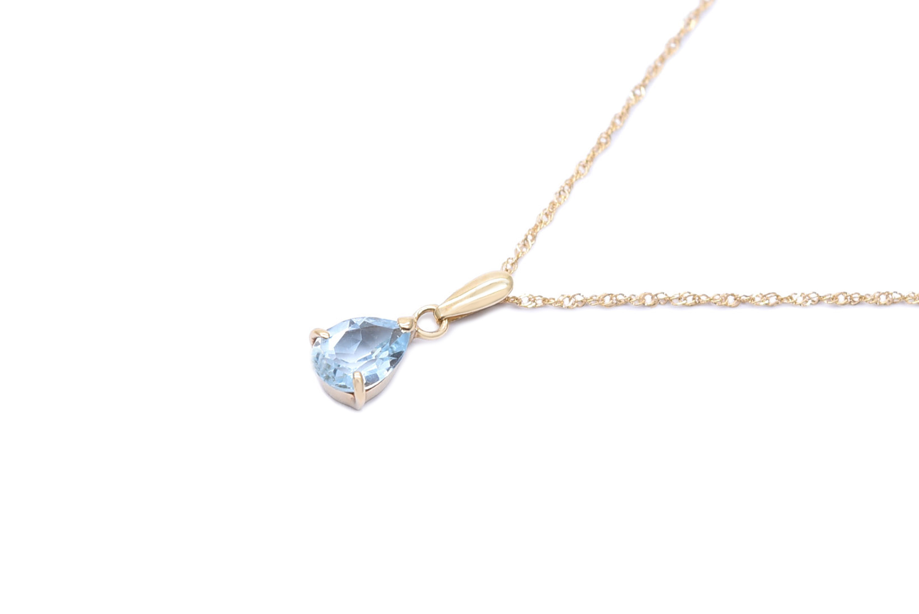 アクアマリンを使用したネックレスです。しずく形のアクアマリンと華奢なチェーンのシンプルなデザインで季節問わず様々なシーンでご使用いただけます。普段使いやオフィスシーンなどにもおすすめです。 長さ42cm/普通/40cmにして使用可能 #アクアマリン#シンプル#普段使い#お出かけ#オフィス