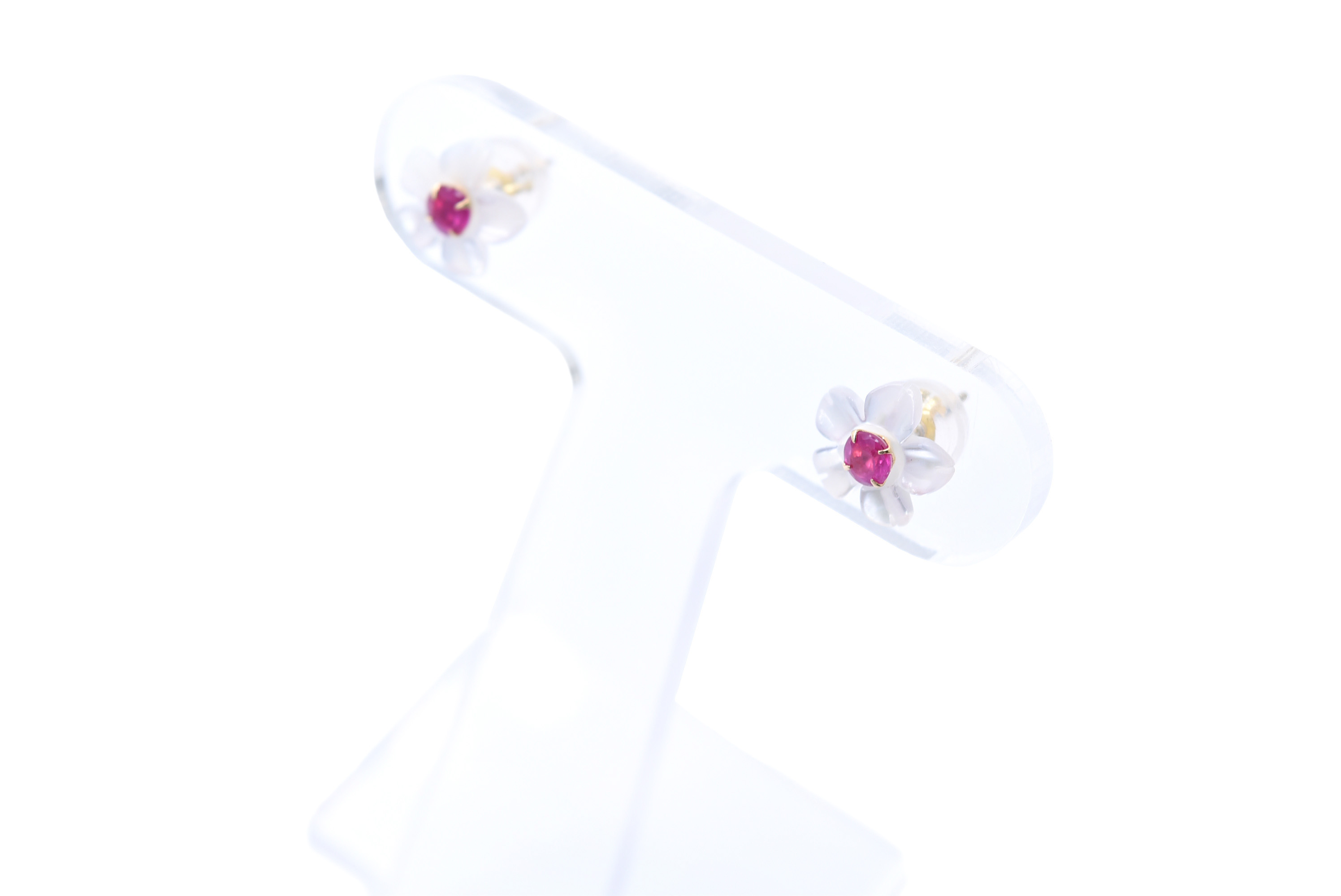 ルビーを使用したピアスです。花をモチーフにしている可愛いデザインです。シンプルなので普段使いからお出かけまで様々なシーンにおすすめです。/貝シェル部分着脱可能 #ルビー#シェル#カジュアル#普段使い#お出かけ#花