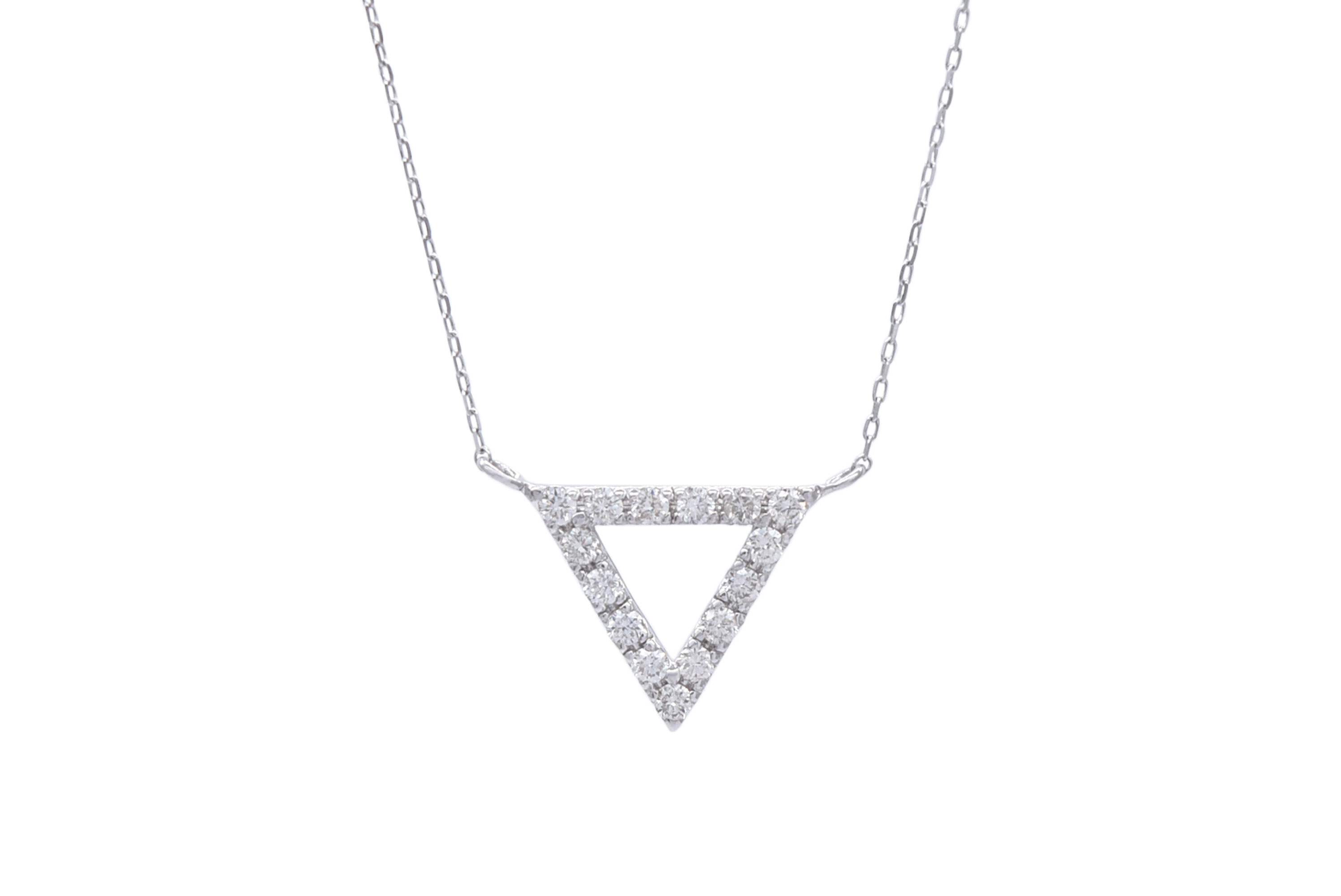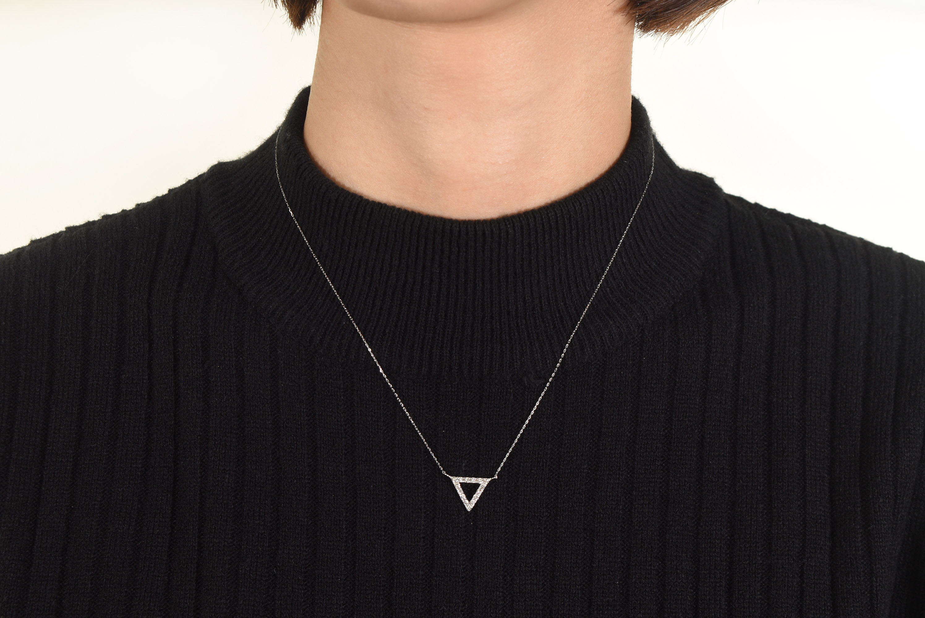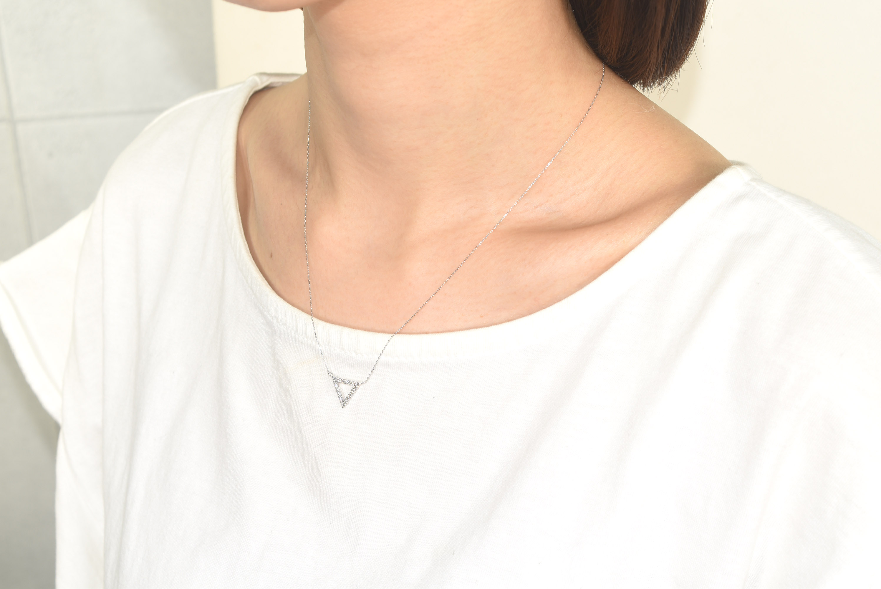 ダイヤモンドを使用したペンダントネックレスです。シンプルなデザインですので、普段使いやカジュアルにもおすすめのアイテムです。 長さ41cm/やや短め/38cmにして使用可能 #シンプル#三角形#普段使い#ジュエリー初心者#カジュアル#オールシーズン
