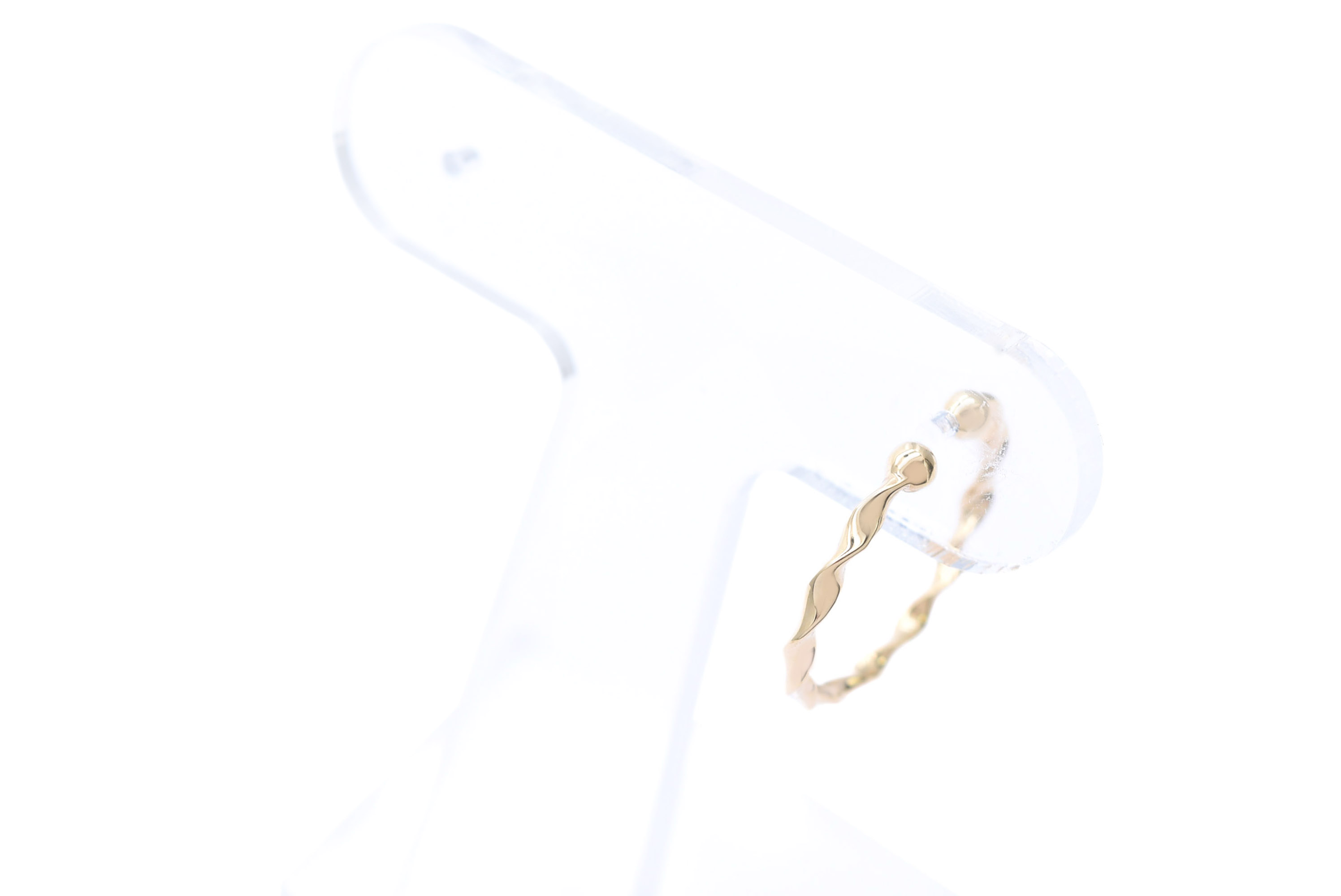イエローゴールドのイヤーカフです。フープ風のシンプルなデザインですが一点でアクセントとなるアイテムです。耳の形や着ける位置によって印象が変わります。他のイヤージュエリーなどとも組み合わせたりアレンジしてもお使いいただけます。イヤーカフは耳に引っ掛けて使用するものなので無理に変形させずに安定する位置でお使いください。 #シンプル#ワンポイント#カジュアル#アレンジ