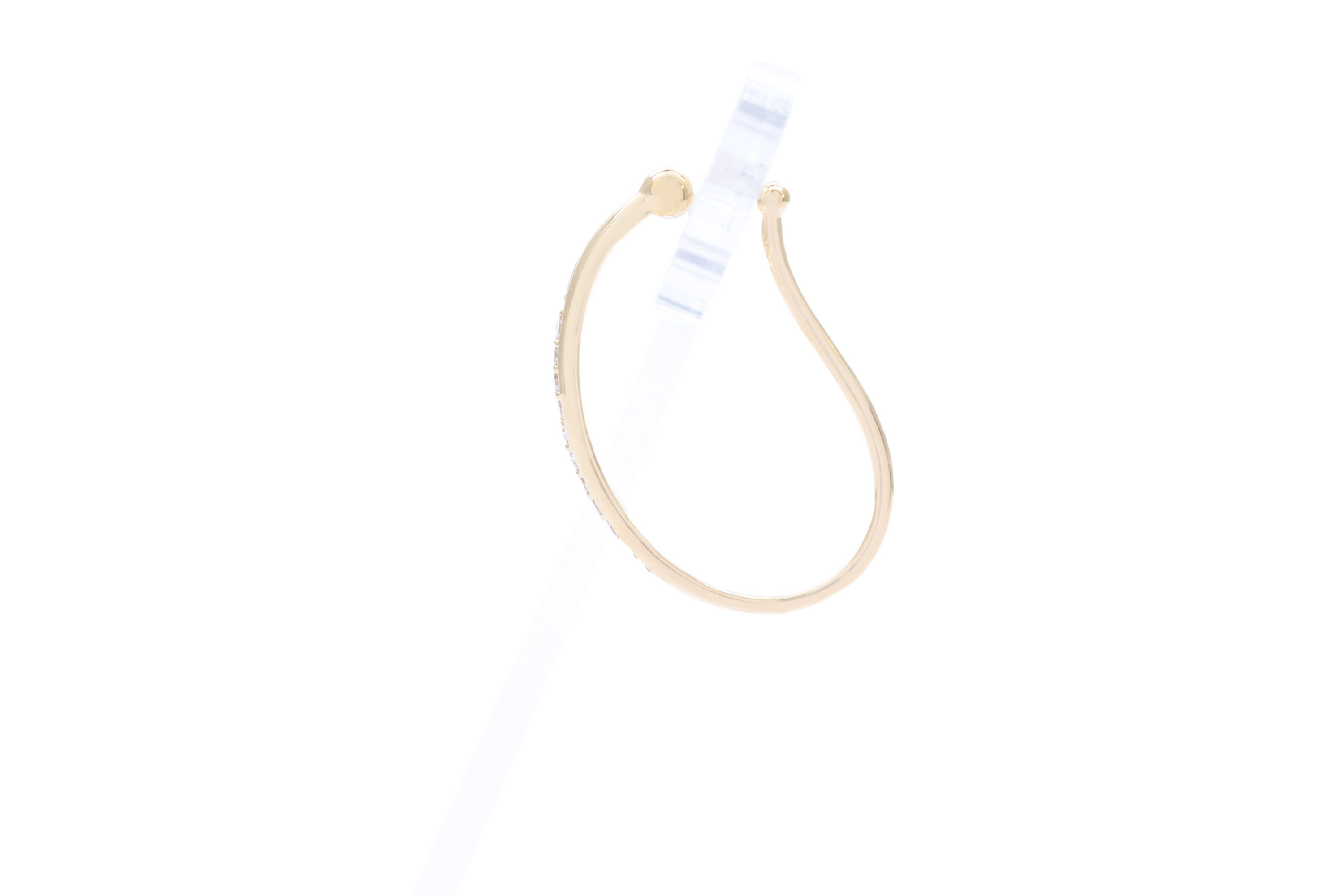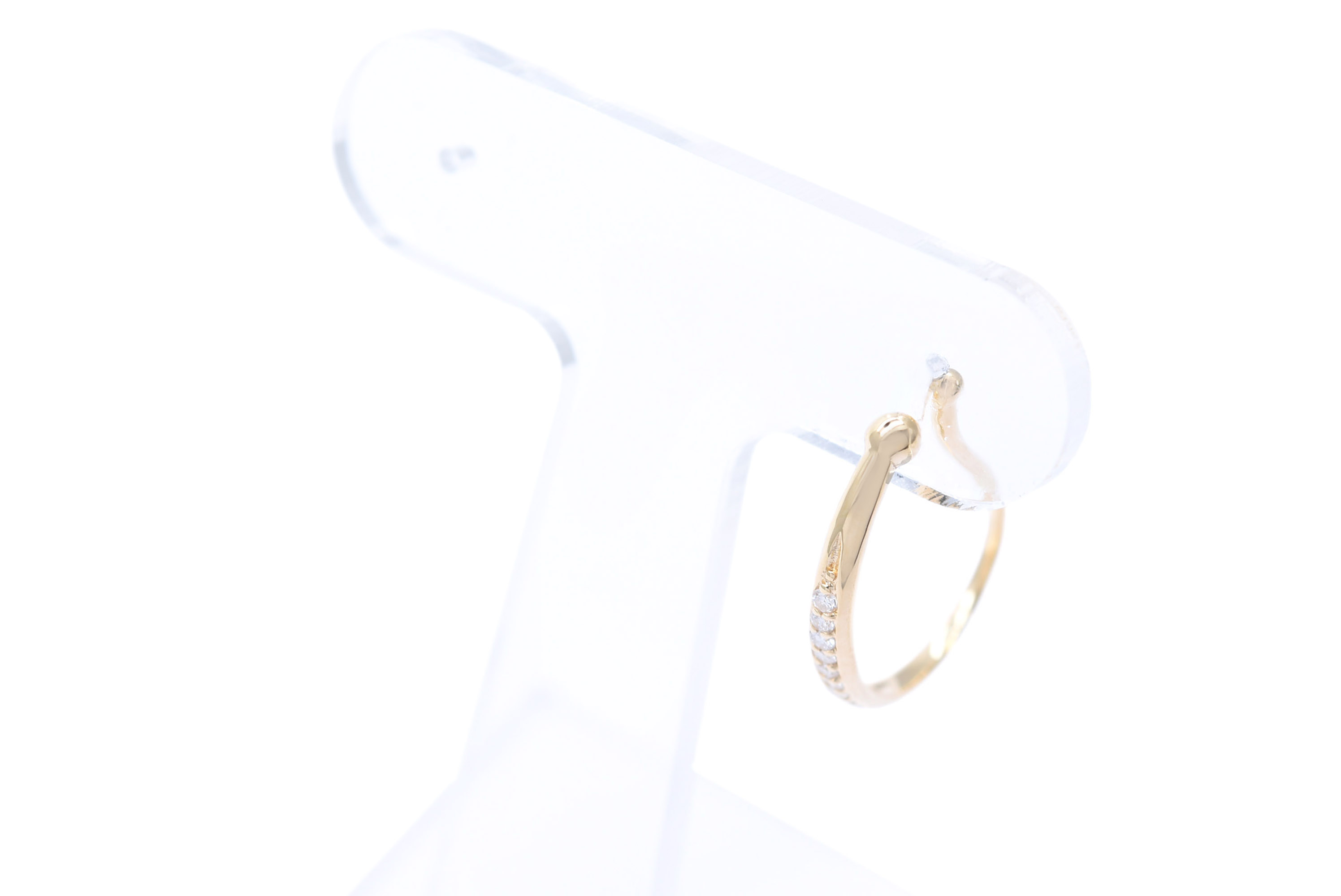 ダイヤモンドを使用したイエローゴールドのイヤーカフです。フープ風のシンプルなデザインですが一点でアクセントとなるアイテムです。耳の形や着ける位置によって印象が変わります。他のイヤージュエリーなどとも組み合わせたりアレンジしてもお使いいただけます。イヤーカフは耳に引っ掛けて使用するものなので無理に変形させずに安定する位置でお使いください。 #シンプル#ワンポイント#カジュアル#アレンジ