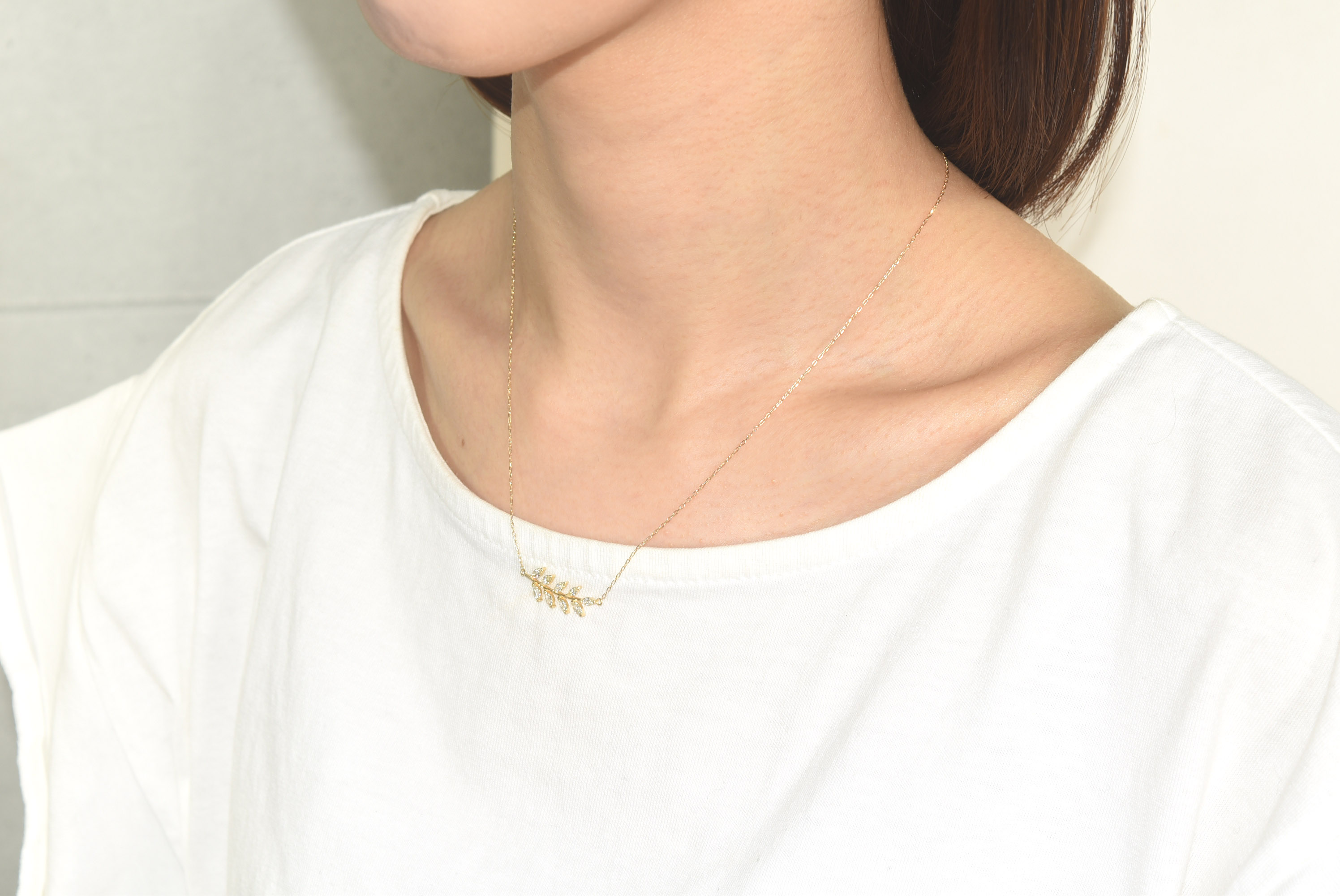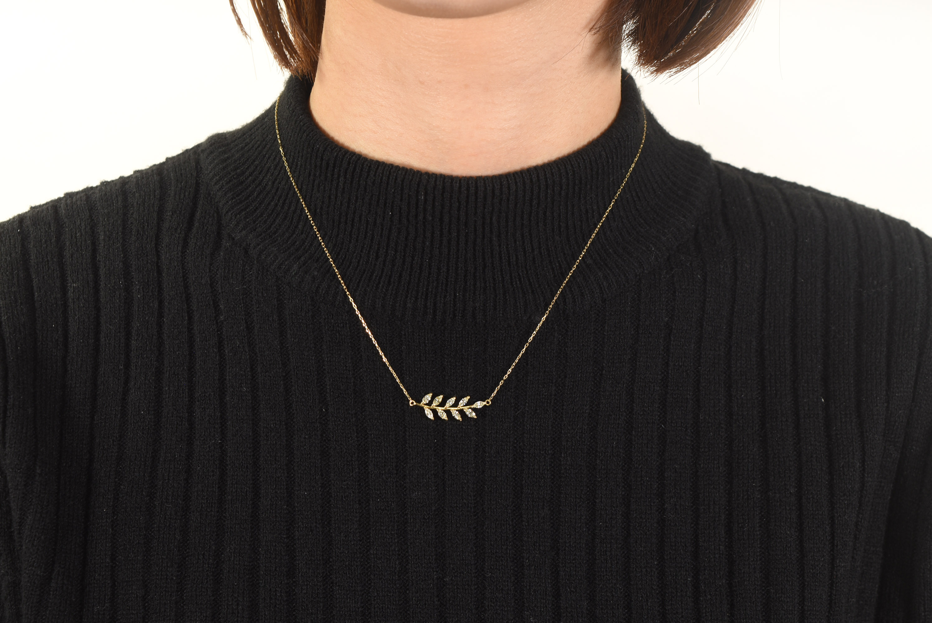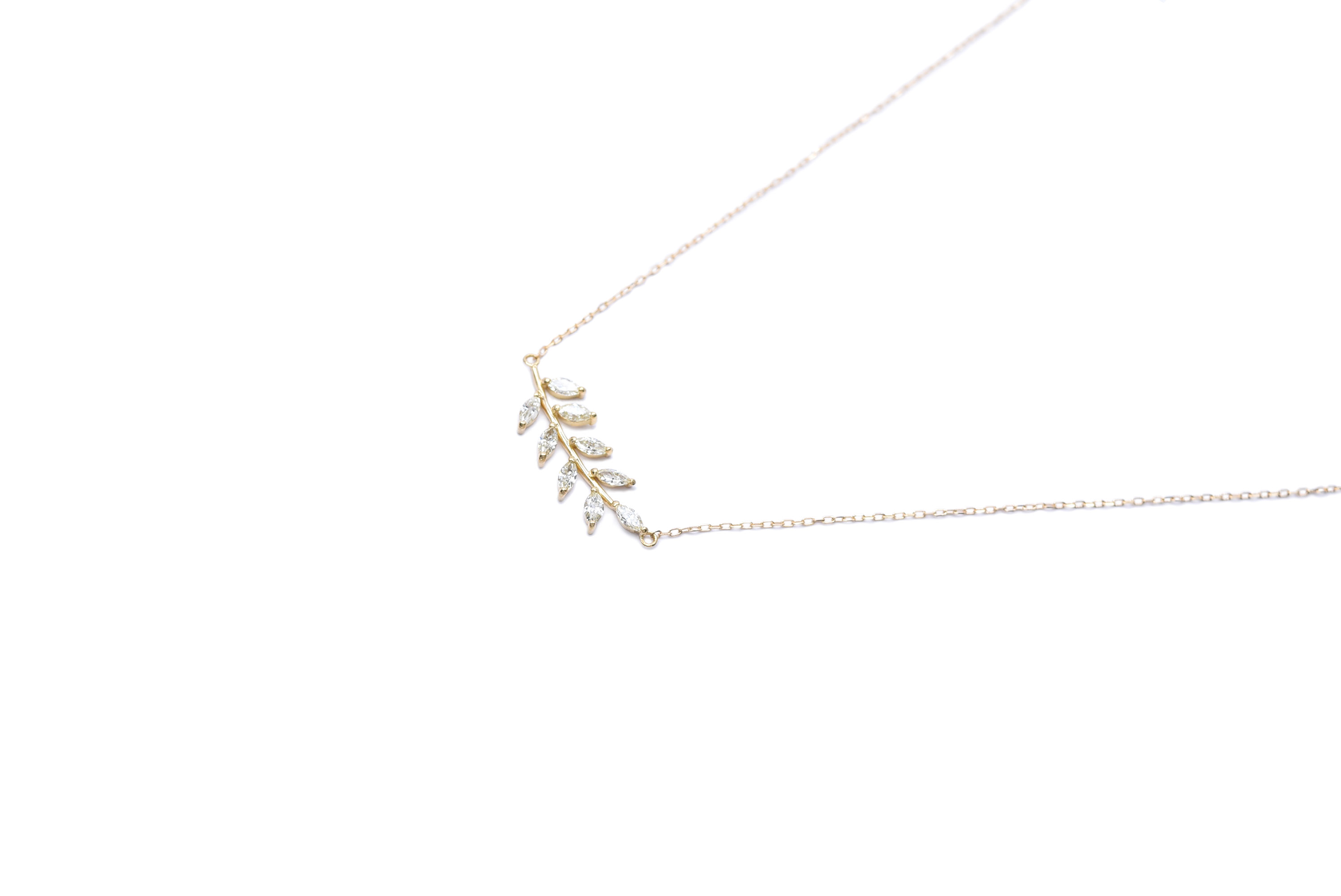 9PCのマーキスカットダイヤモンドを1列に並べたリーフモチーフのペンダントネックレスです。華やかなシーンに映えるアイテムです。 長さ42cm/普通/39cmにして使用可能 #ダイヤモンド#エレガントジュエリー#パーティー#オールシーズン#葉
