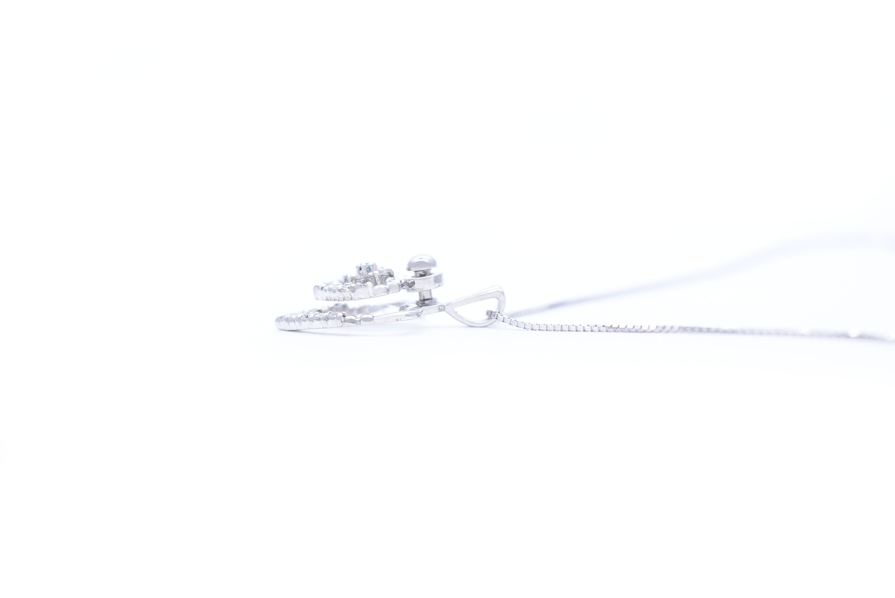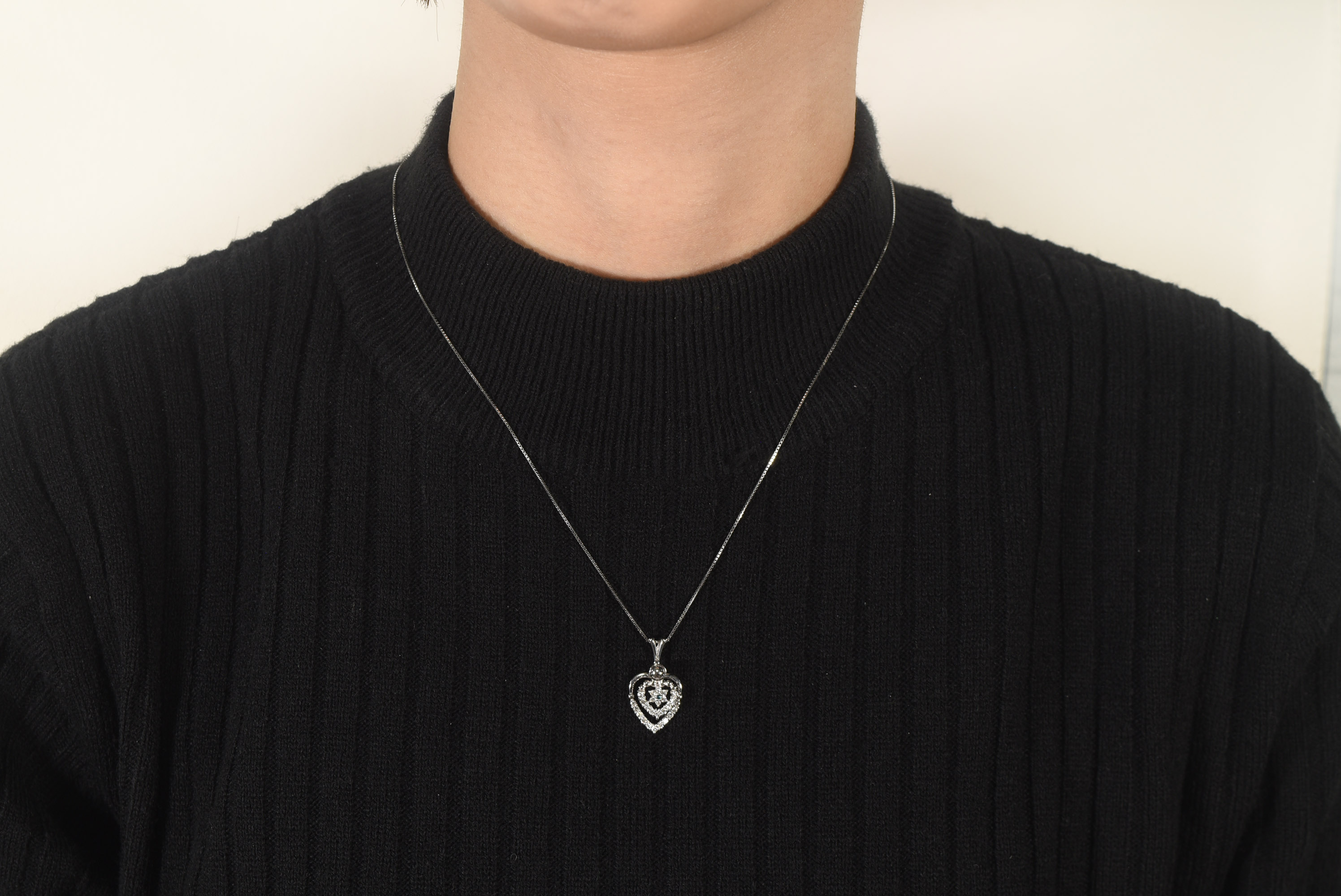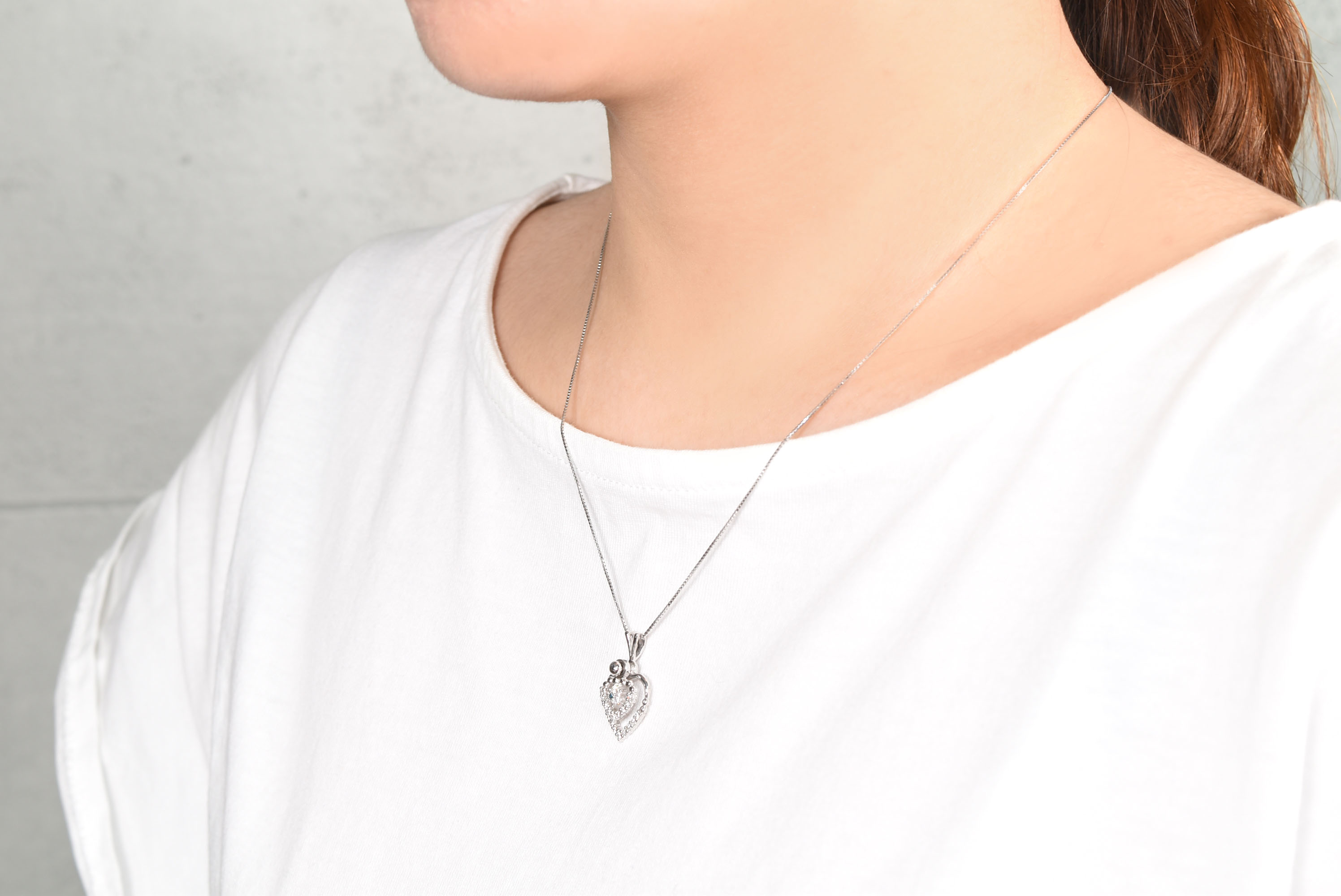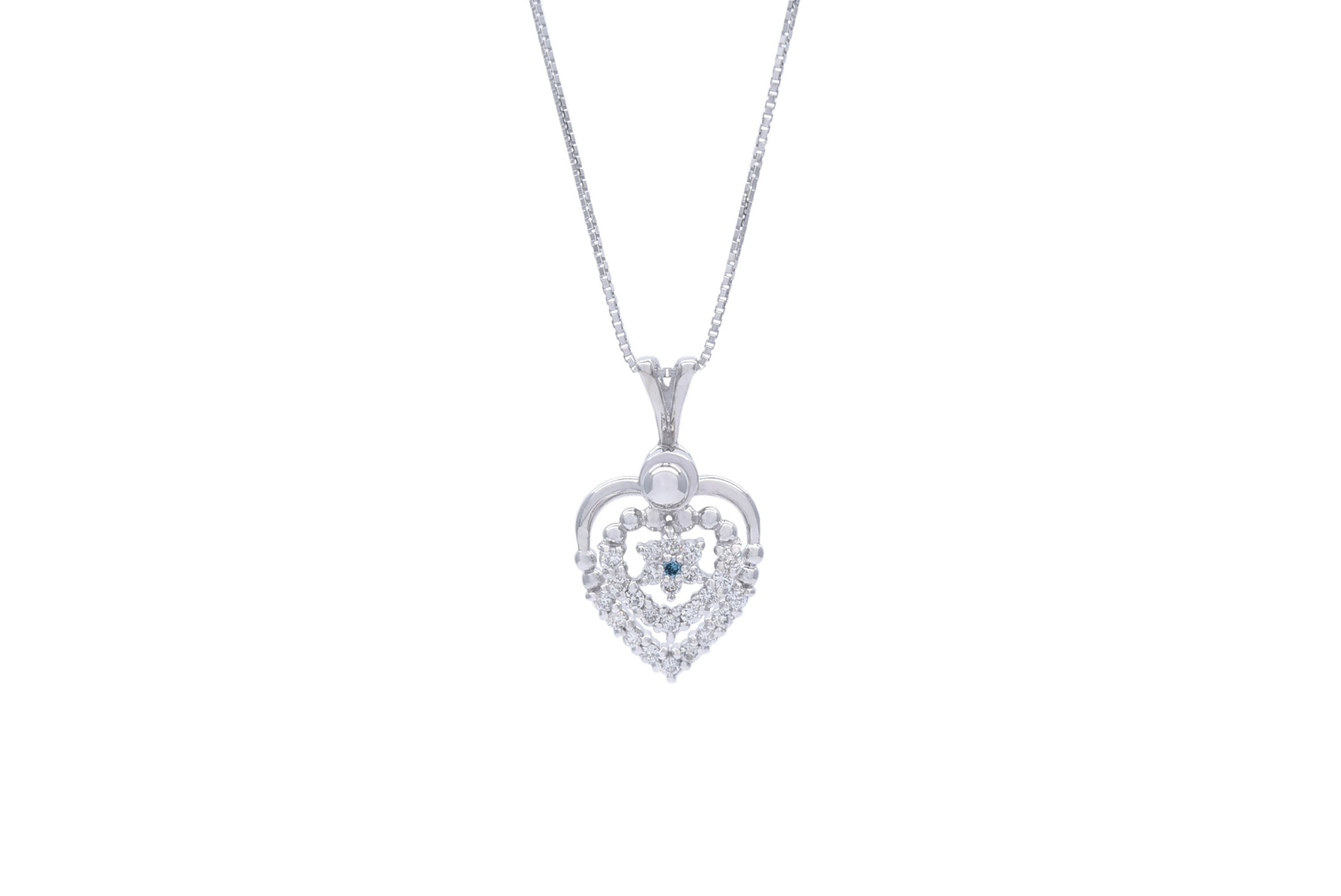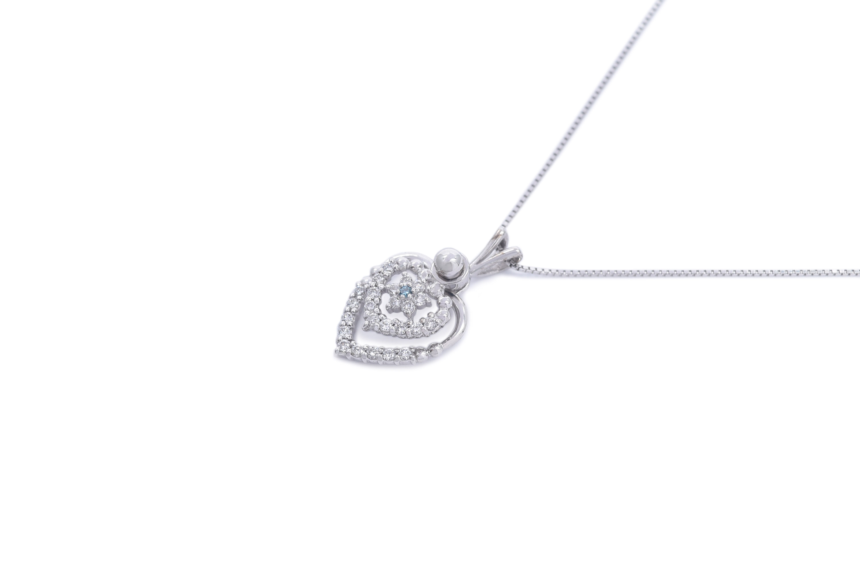 ダイヤモンドとブルーダイヤモンドを使用したペンダントネックレスです。ハートモチーフの中のブルーダイヤモンドが存在感があり上品で可愛らしいデザインです。2つのハートがバラバラに稼働するスウィングタイプです。 長さ45cm/やや長め/フリーチェーン #ダイヤモンド#ブルーダイヤモンド#ハート#上品#可愛い
