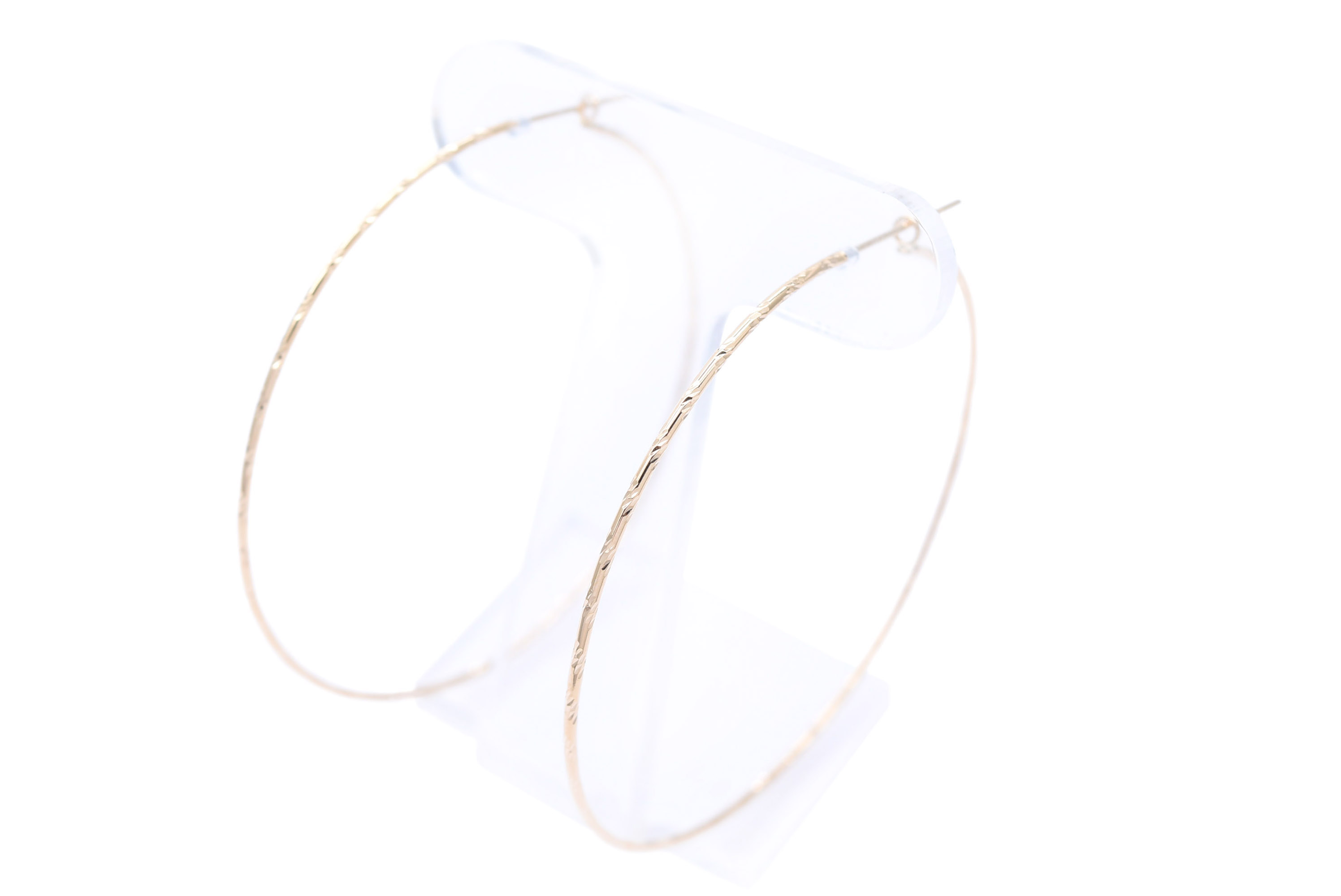 直径49㎜、厚さ1㎜の大型フープピアスです。存在感のあるジュエリーですので、パーティーなどの華やかなシーンで活用していただきたいアイテムです。 #エレガントジュエリー#フープ#パーティー#ゴージャス