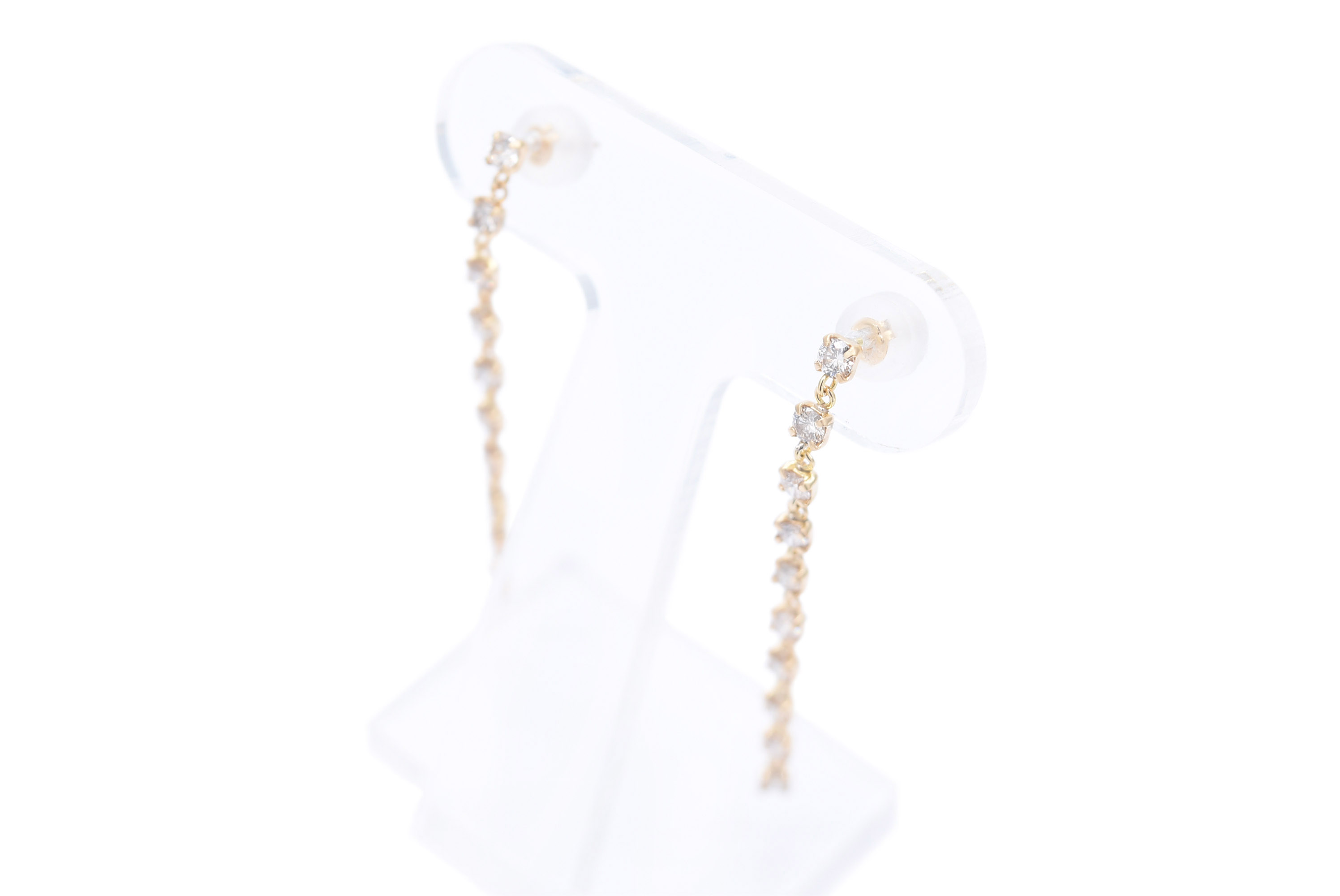 ダイヤモンドが1列に並んだロングタイプのピアスです。揺れるデザインでエレガントな印象を与えるピアスです。パーティーやイベントなど様々なシーンにご利用いただけるアイテムです。 #ダイヤモンド#エレガントジュエリー#パーティー