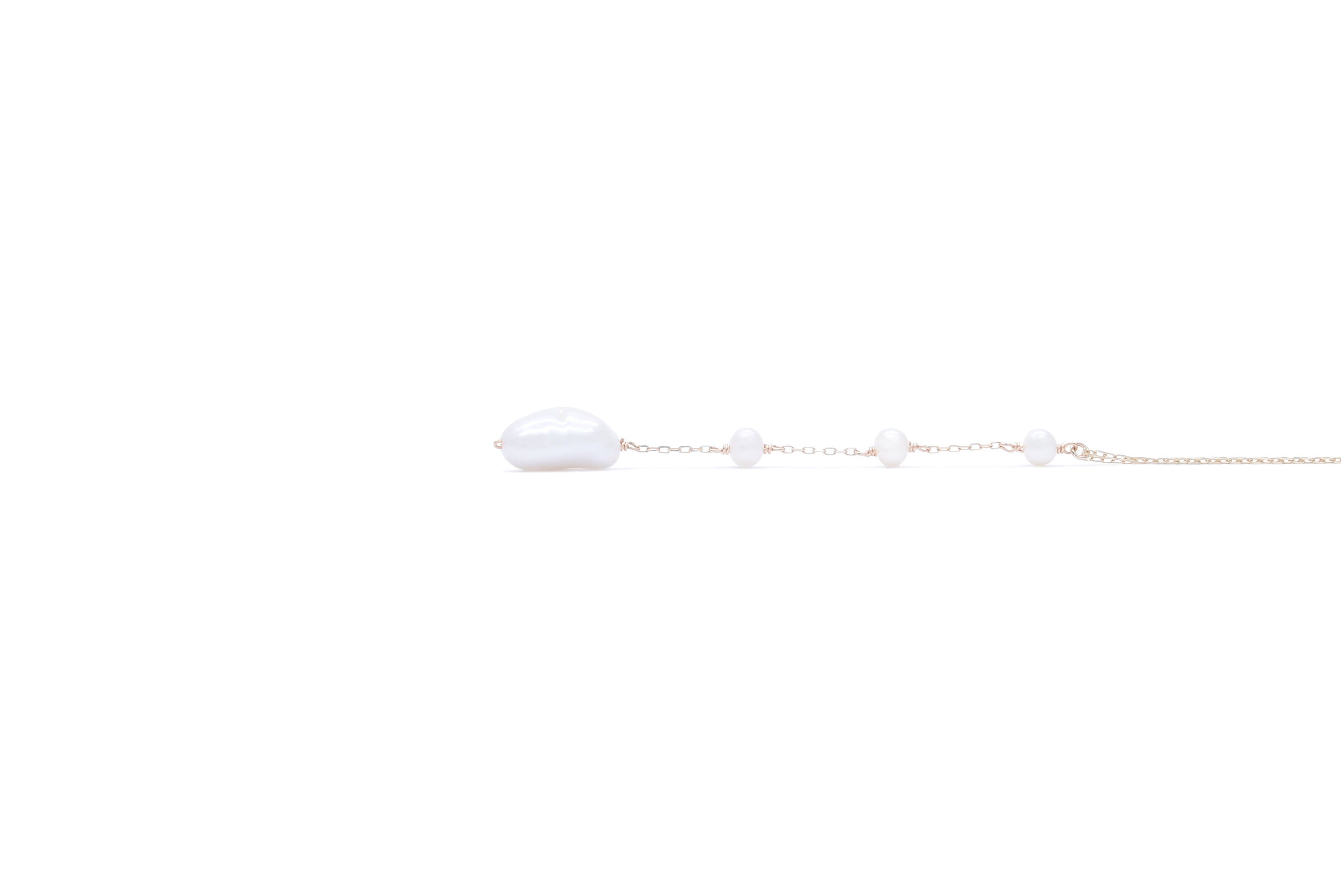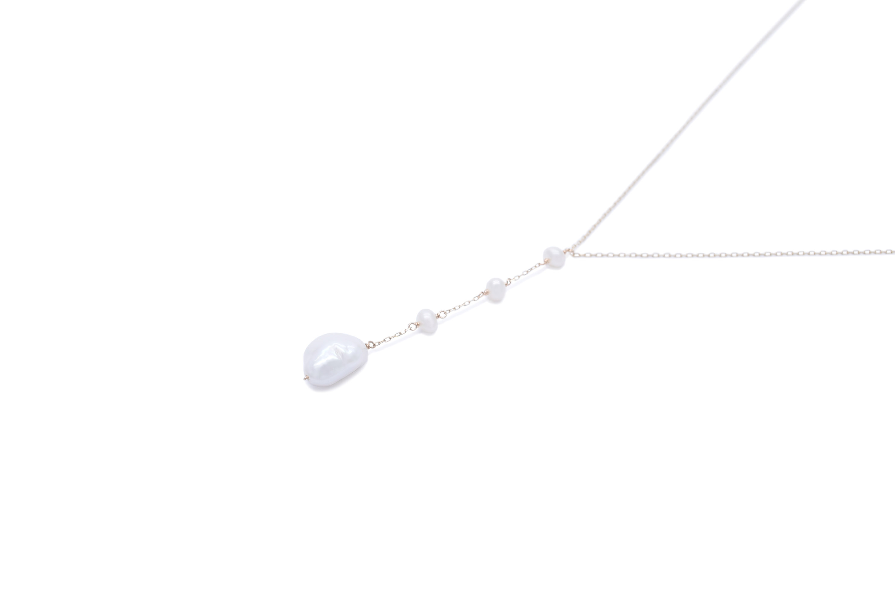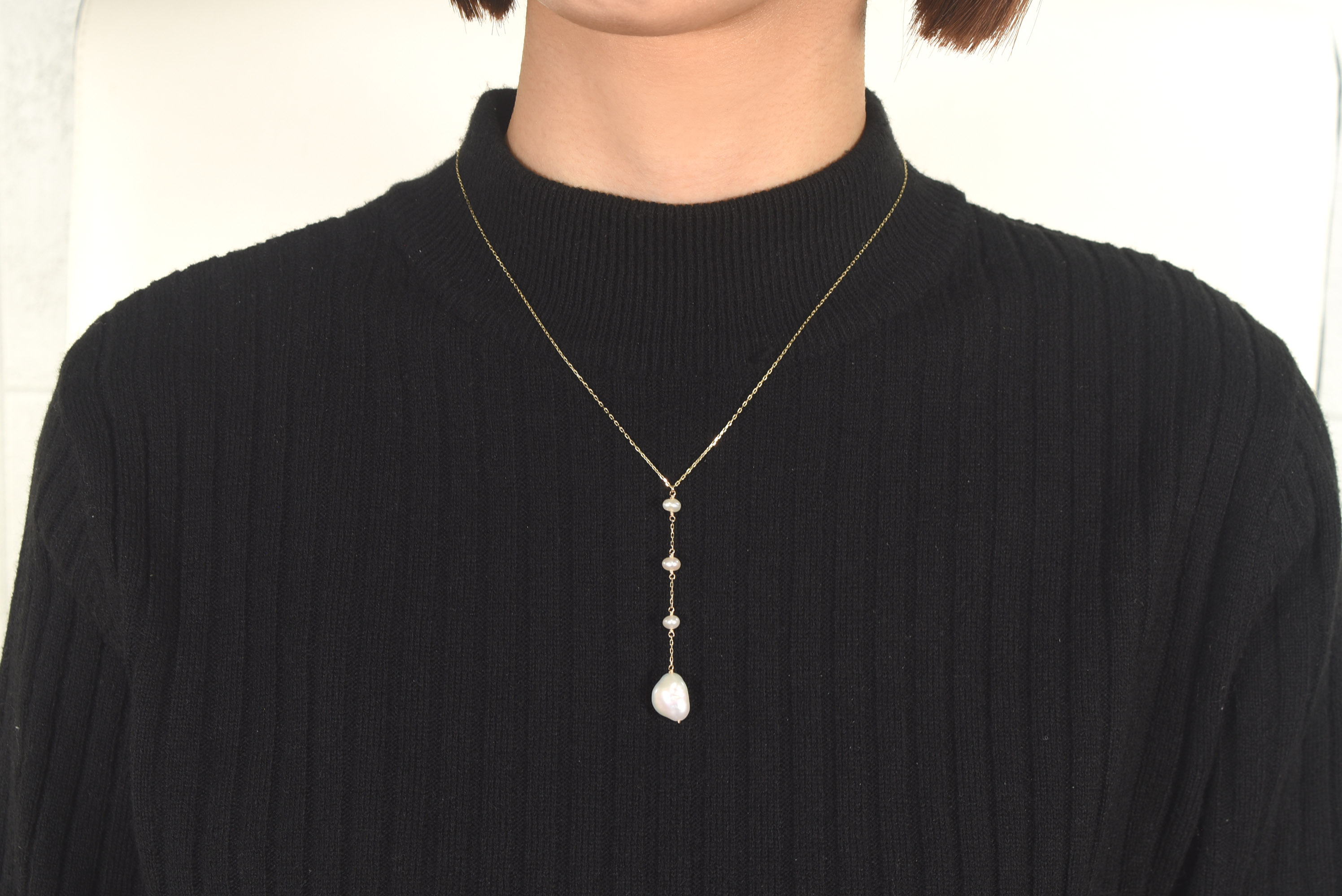 バロック形の淡水パールを使用したペンダントネックレスです。形と大きさの違うパールを4PC使用したデザイン性のあるアイテムです。存在感があるのでお出かけや女子会などにおすすめです。 長さ42cm/普通/38cmに調節可能 #パール#お出かけ#女子会#結婚式