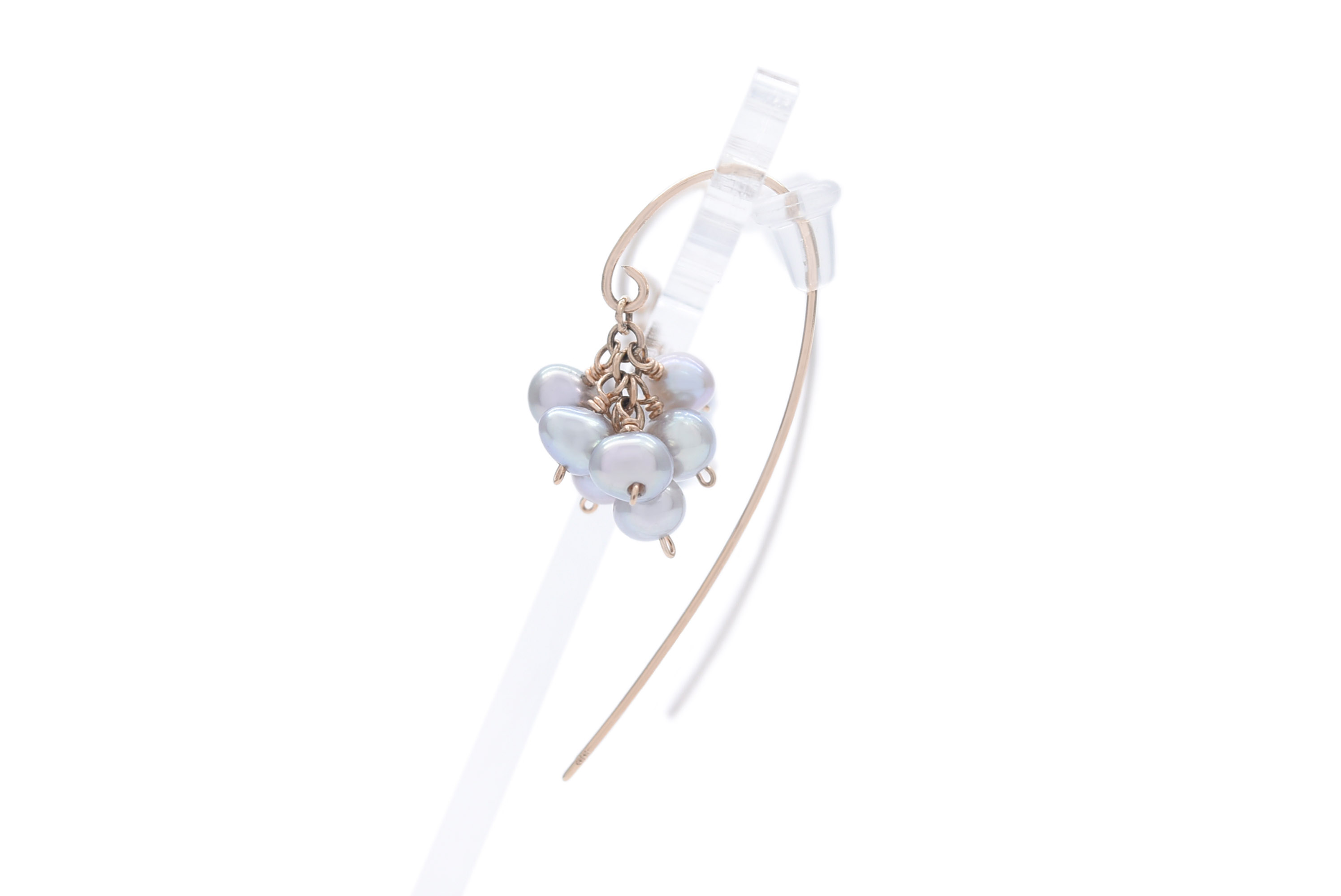 バロック形の淡水パールを使用したフックピアスです。グレーカラーの淡水パールが動く度に揺れて上品さと可愛らしさのあるアイテムです。華やかなデザインなのでお出かけや女子会などにおすすめです。 #パール#上品#お出かけ#女子会