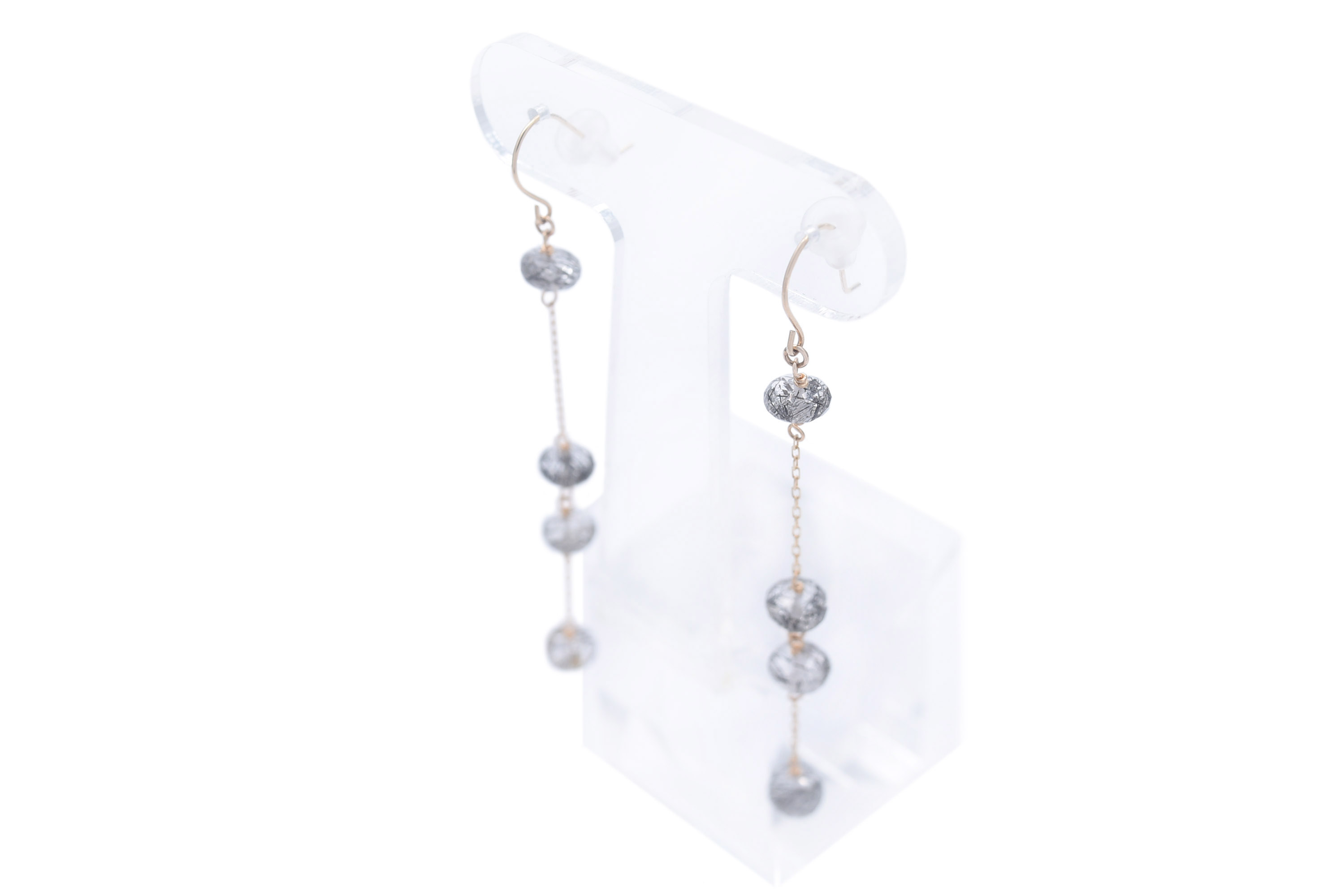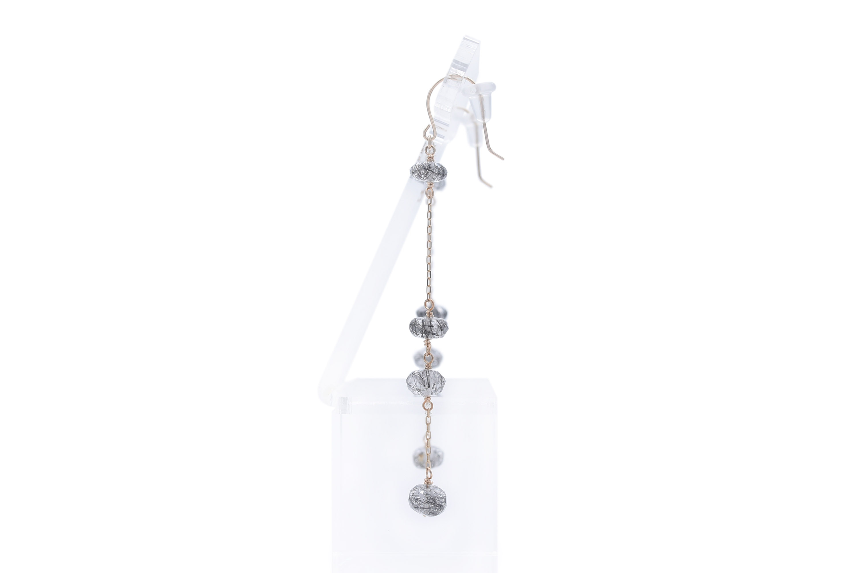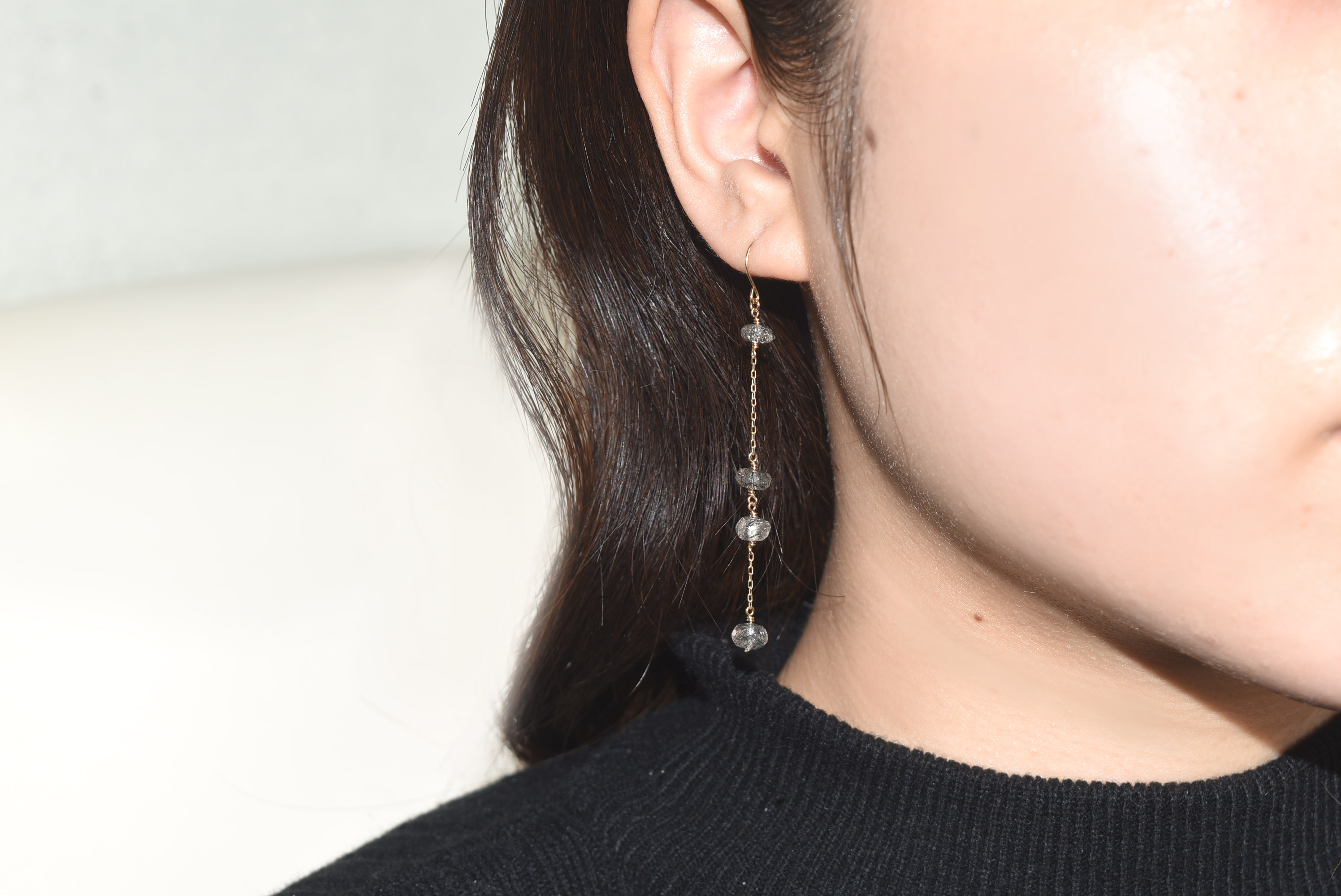 ブラックルチルを使用したピアスです。ロングタイプのデザインで動く度に揺れて女性らしいアイテムです。カジュアルさもあるデザインなので普段使いから女子会まで様々なシーンにおすすめです。 #クォーツ#スウィング#カジュアル#普段使い#女子会