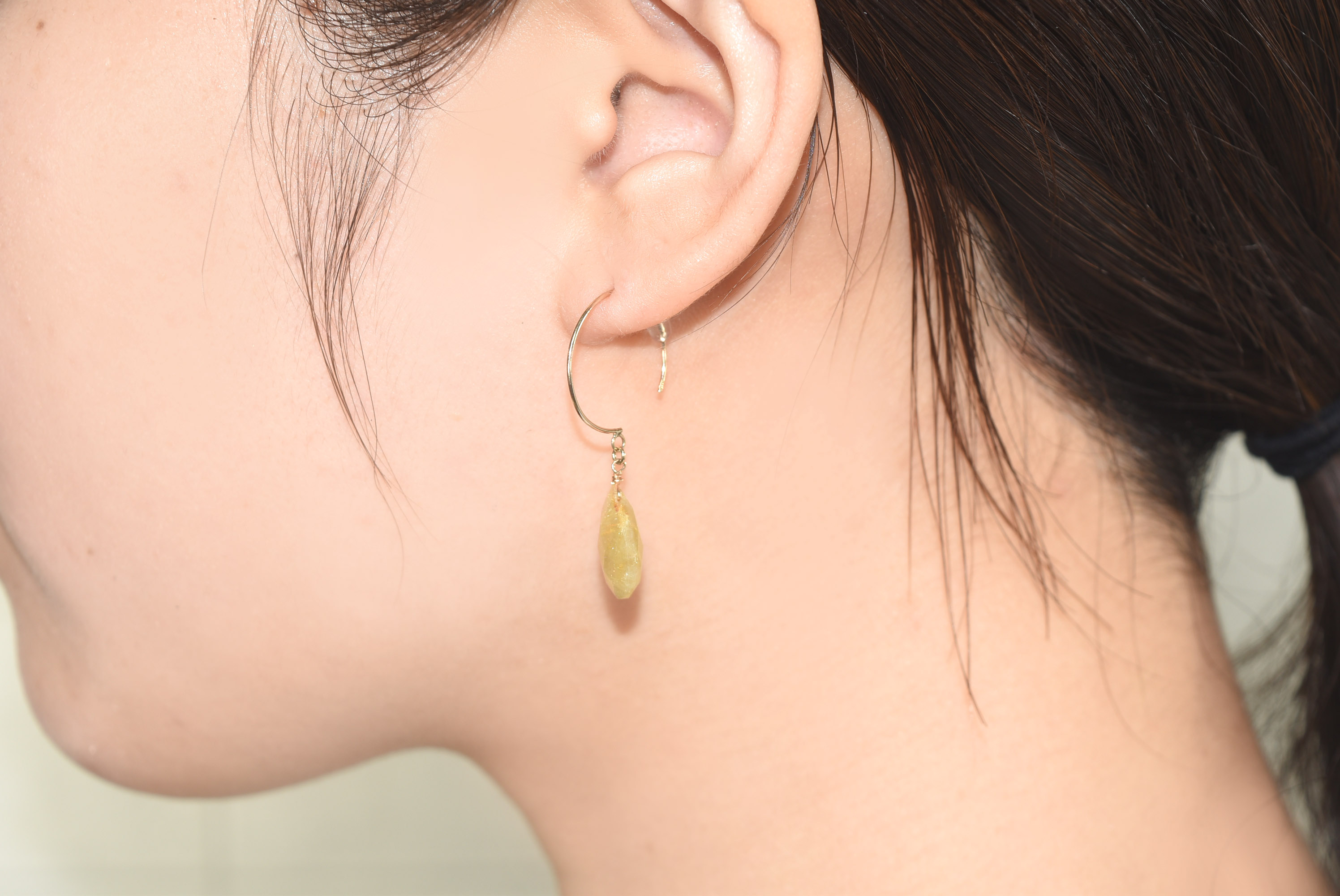 ルチルを使用したピアスです。シンプルなデザインながらドロップカットされたルチルの存在感が華やかなアイテムです。普段使いからお出かけまで様々なシーンにおすすめです。 #クォーツ#シンプル#普段使い#お出かけ