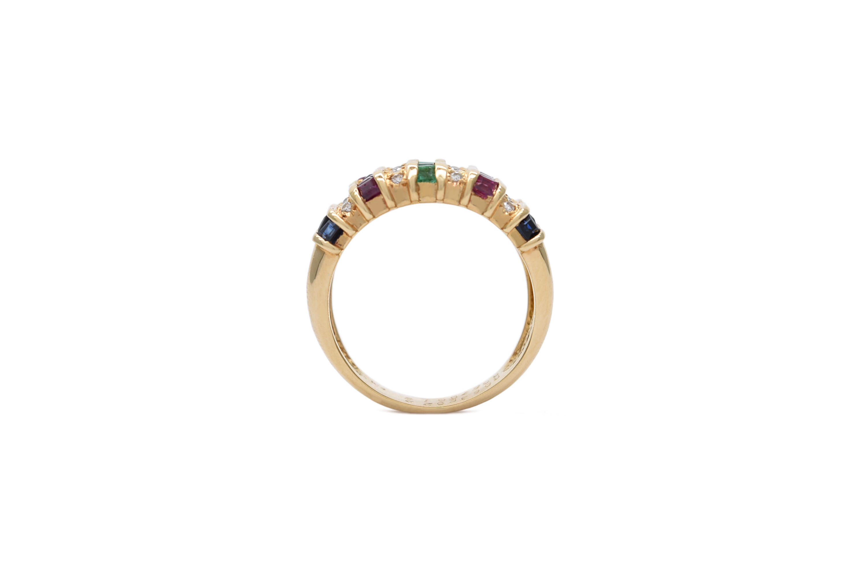 世界四大宝石のダイヤモンド・ルビー・エメラルド・サファイアを使用したリングです。カラフルなデザインですので、シンプルなファッションのアクセントにおすすめです。 #マルチ#カラフル#エレガント#お出かけ#女子会
