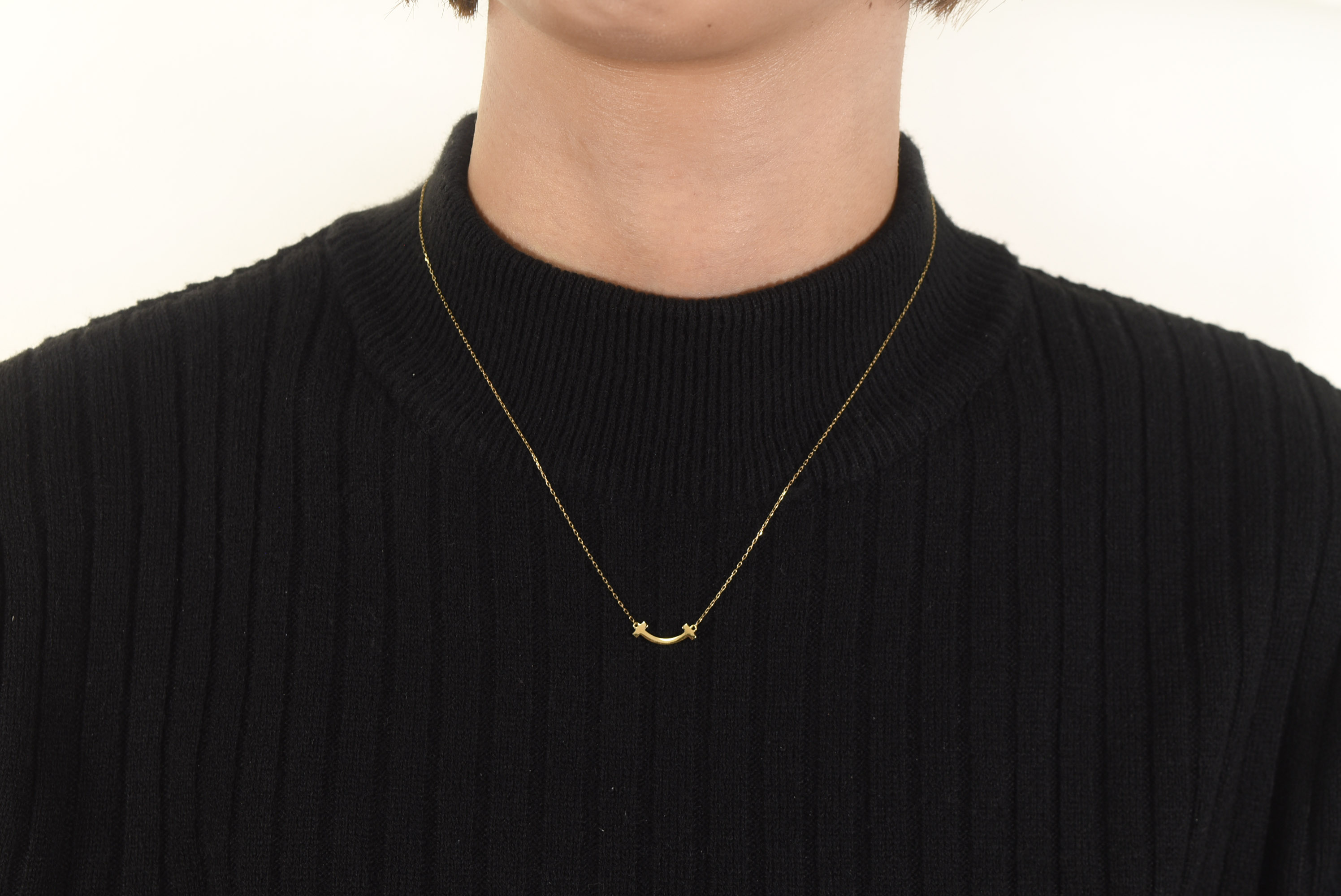 ダイヤモンドを使用したペンダントネックレスです。人気のスマイルデザインで身に着けているだけで明るくなるアイテムです。リバーシブルで使用することができて2wayで楽しむことができます。 長さ41cm/やや短め/38cmにして使用可能 #ダイヤモンド#リバーシブル#2way#スマイル#笑顔#可愛い#普段使い#お出かけ