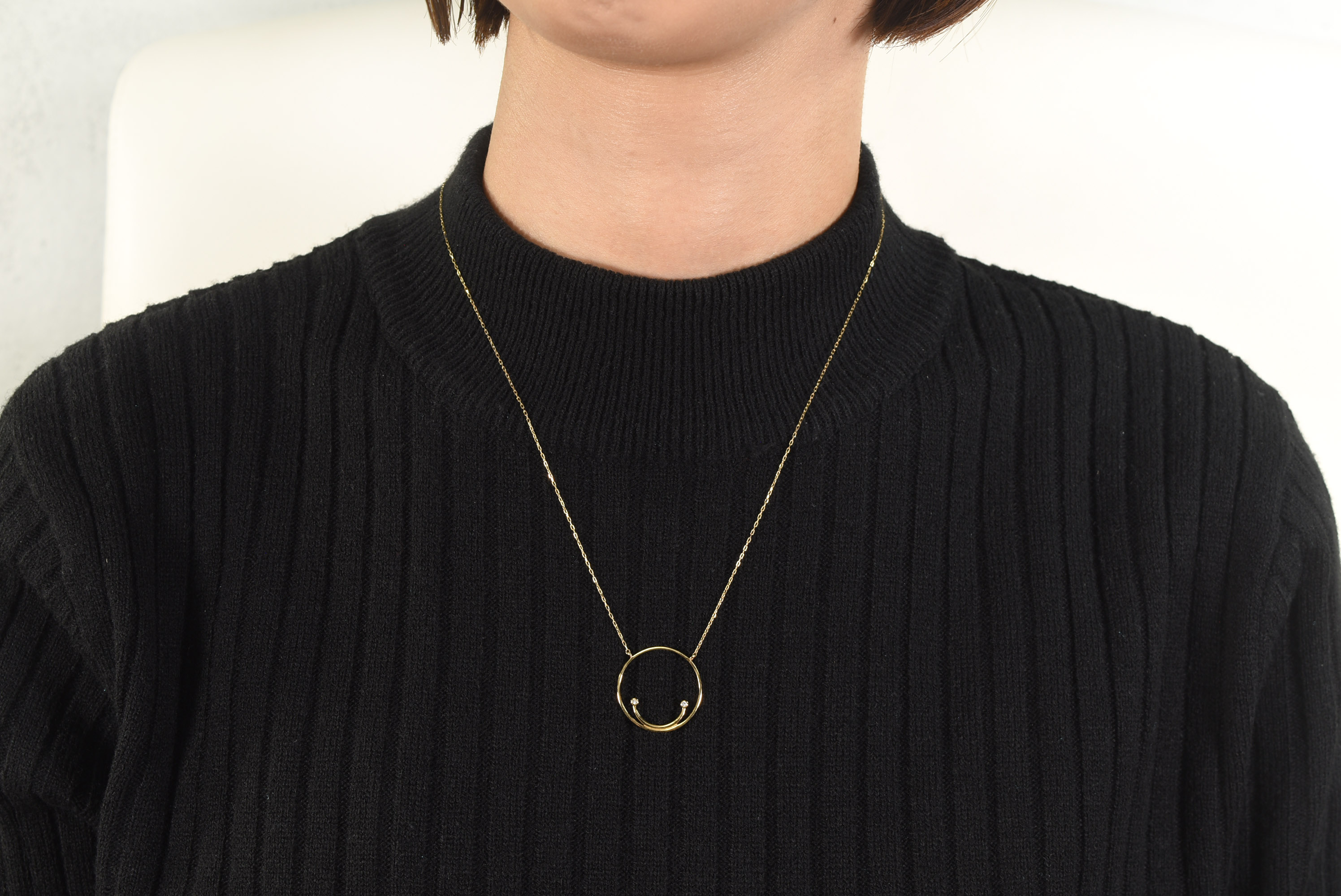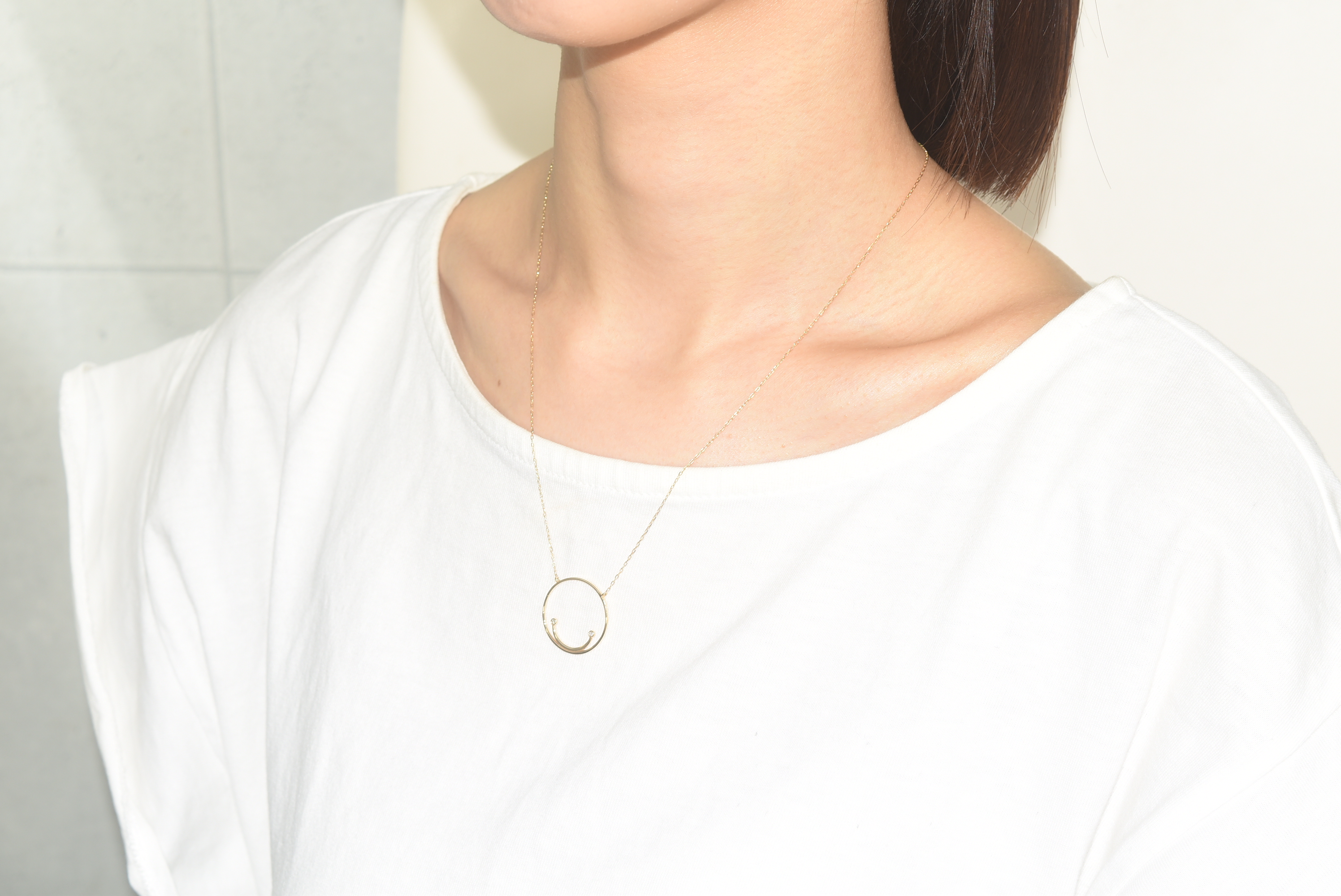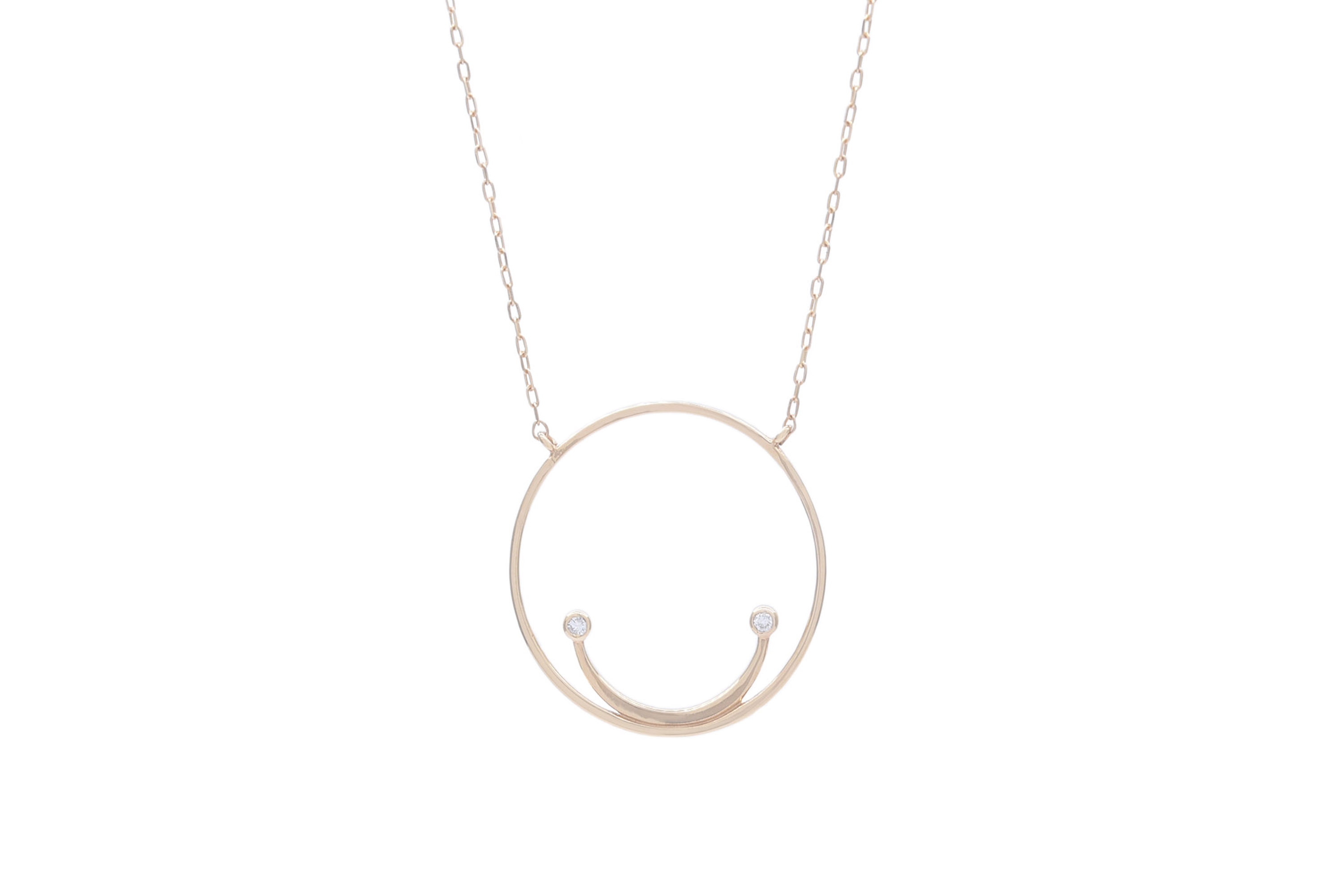 ダイヤモンドを使用した大きめのスマイルモチーフの可愛いペンダントネックレスです。シンプルなファッションのワンポイントやパーティーなどおすすめです。フリーチェーンなので長さを自由に変更することができます。 長さ47cm/やや長め/フリーチェーン #ダイヤモンド#スマイル#笑顔#人気#可愛い