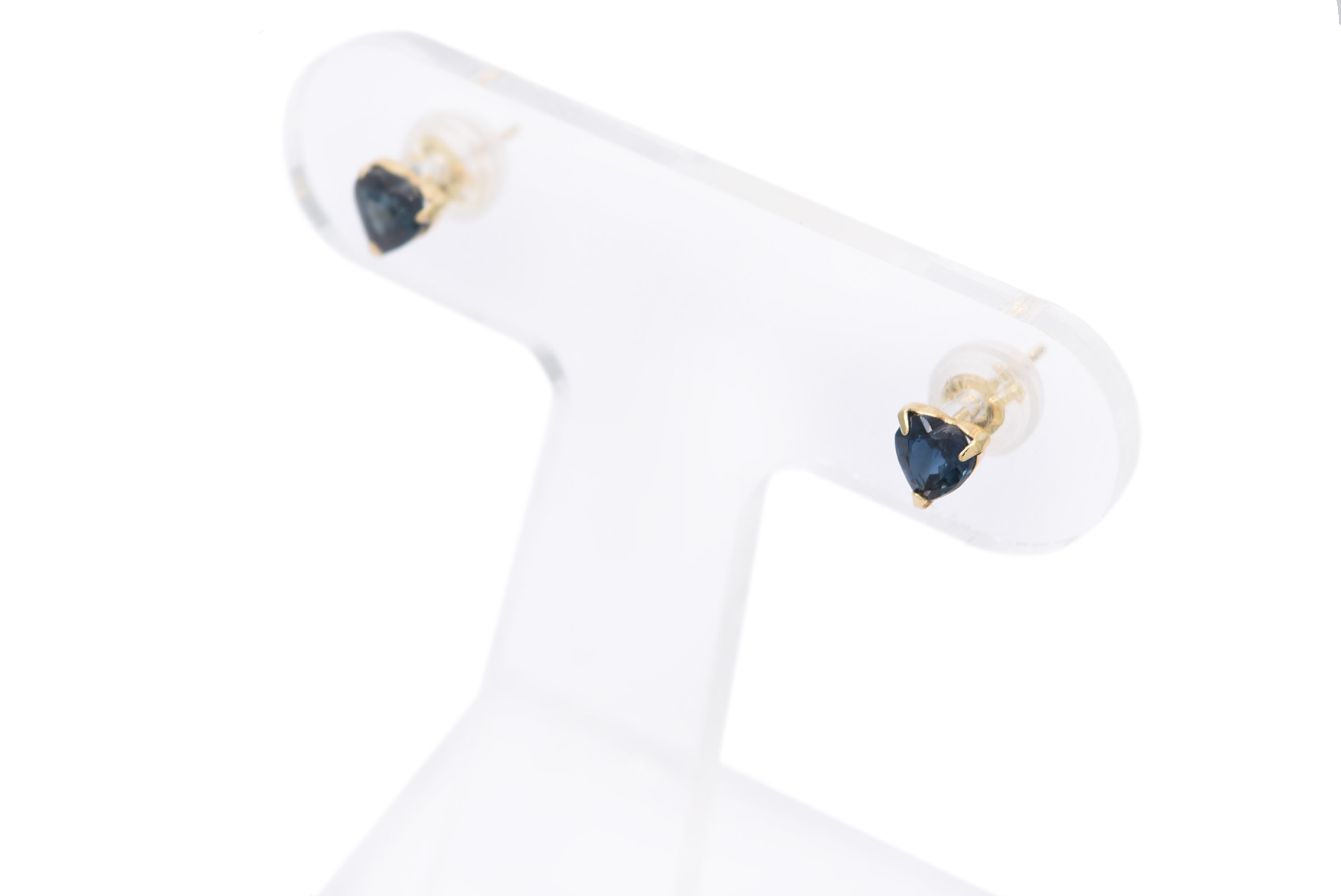 ハートカットのサファイア石を1個ずつ使用しているシンプルで可愛らしいデザインのピアスです。サファイアブルーが落ち着いた印象で、耳元をさりげなく彩るアイテムです。 #サファイア#ハート#可愛い#普段使い#お出かけ