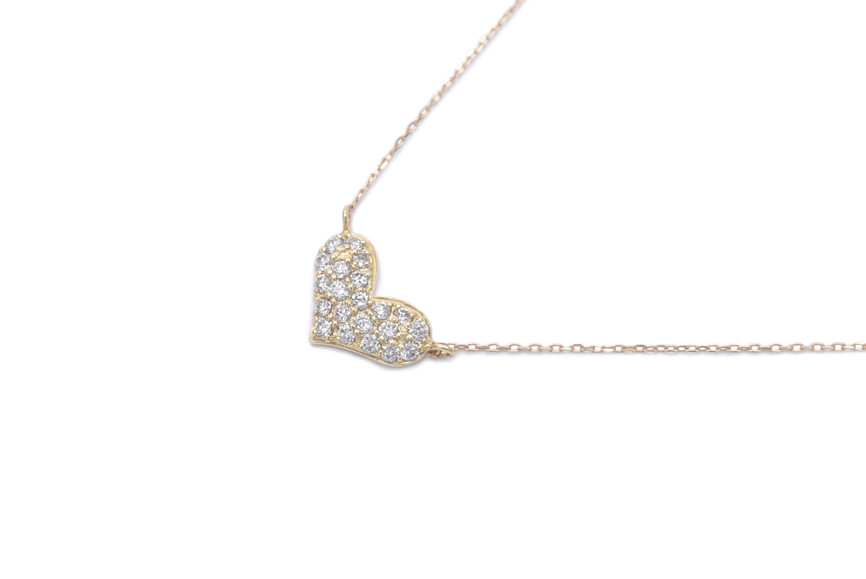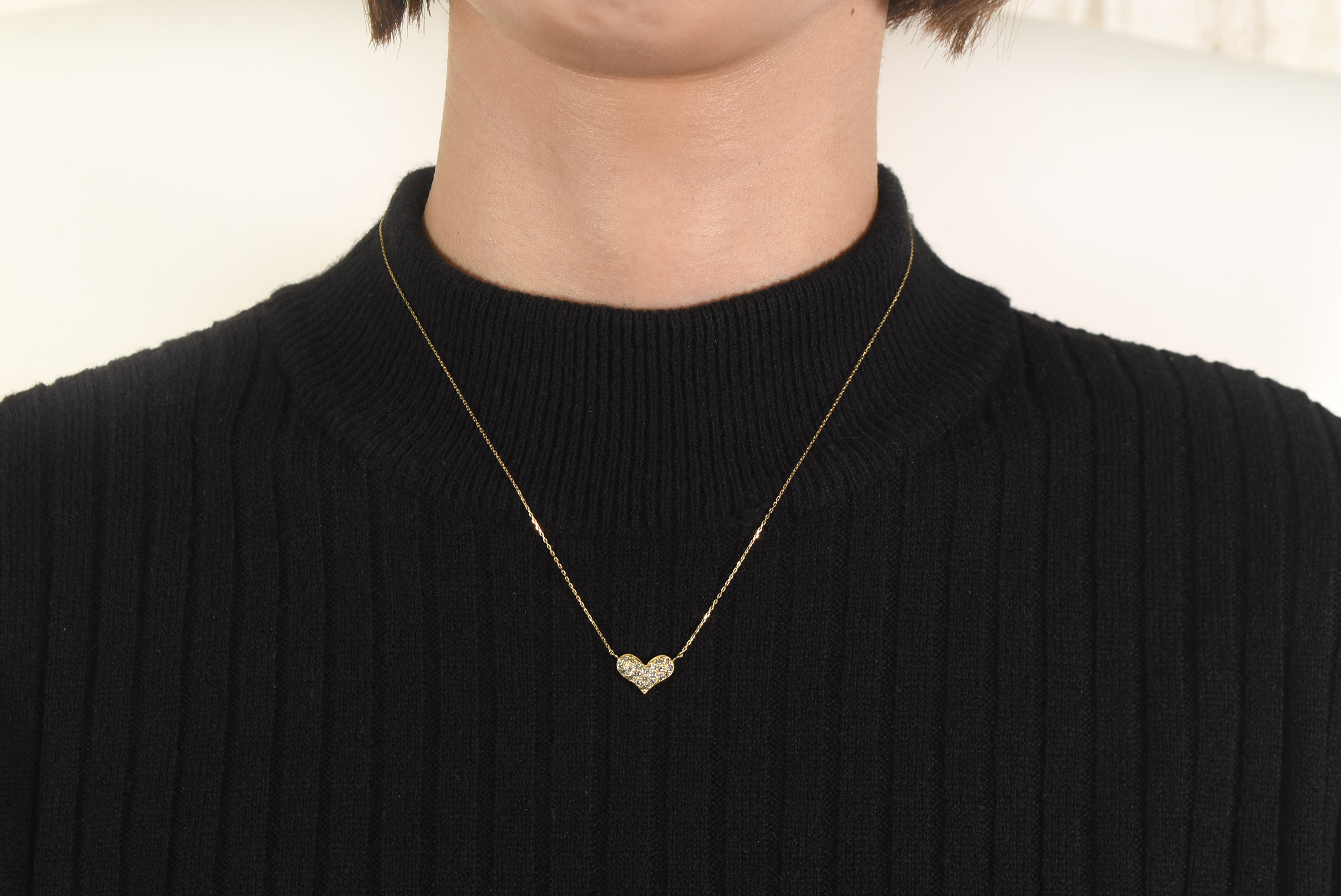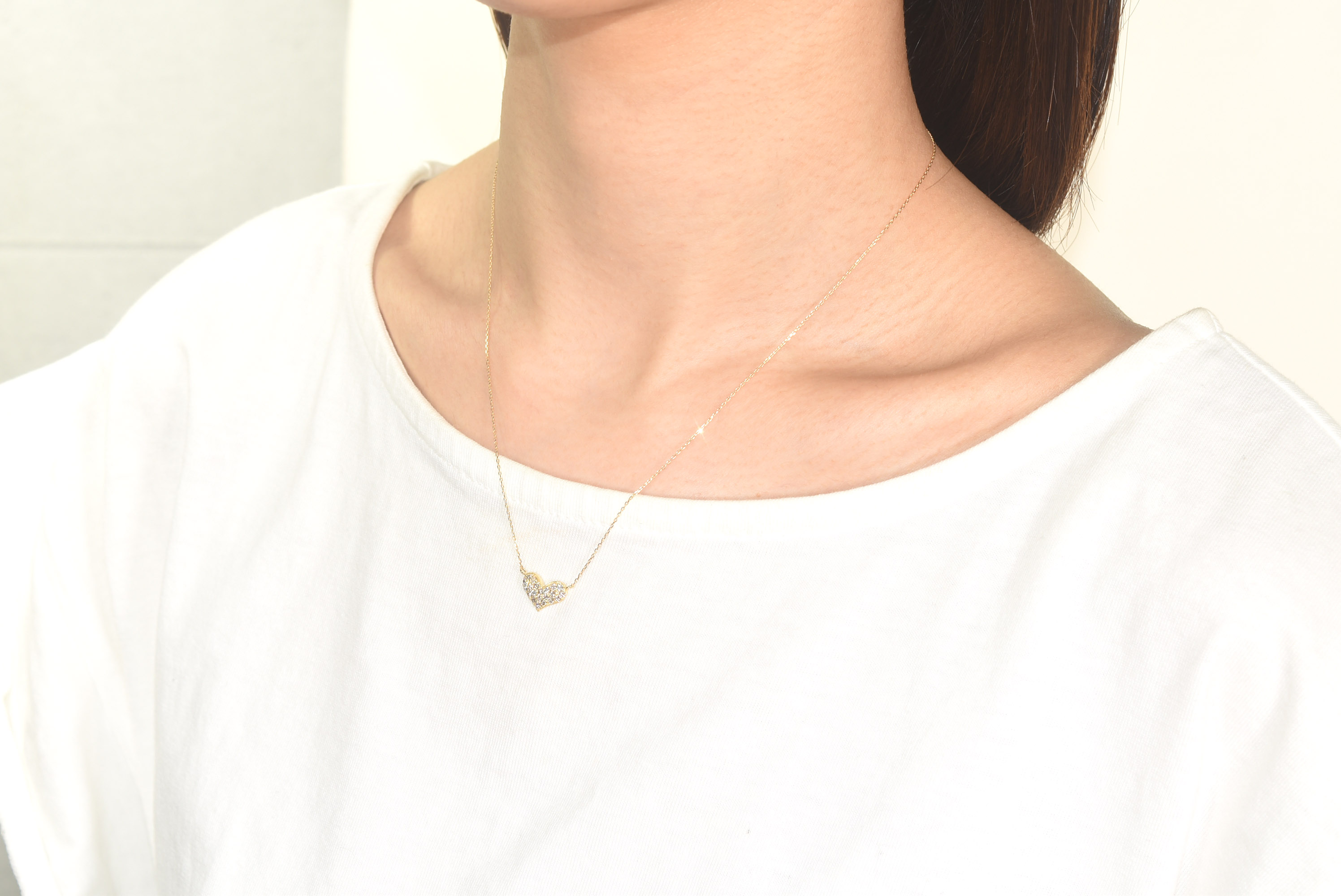 ダイヤモンドを使用したペンダントネックレスです。ハートモチーフの中にダイヤモンドを敷き詰めた可愛さと上品さのあるデザインです。揺れるたびにキラキラと輝き綺麗なアイテムなのでお出かけや女子会などにおすすめです。 長さ41cm/やや短め/38cmにして使用可能 #ダイヤモンド#ハート#シンプル#普段使い#お出かけ