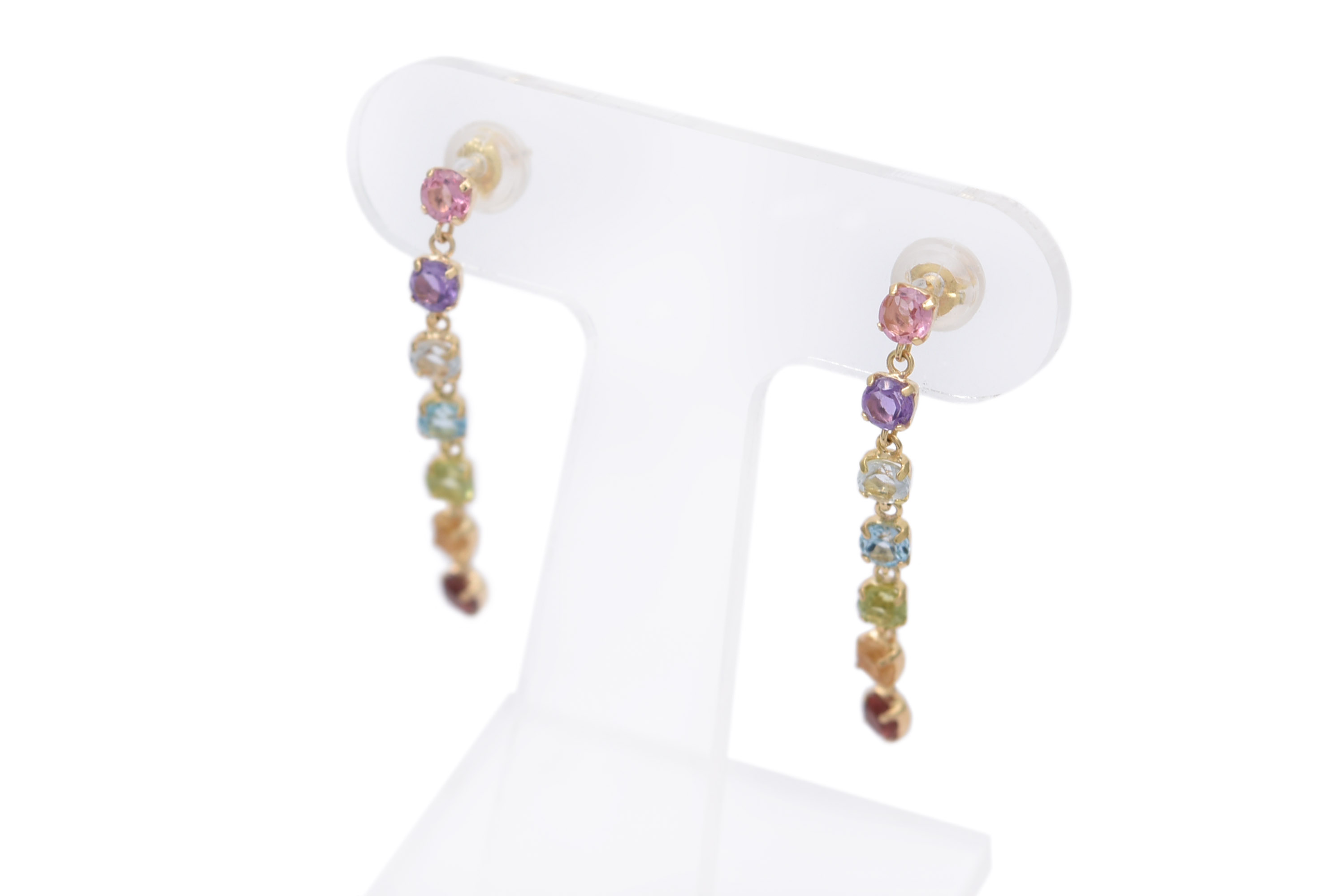 ピンクトルマリン・アメシスト・ホワイトトパーズ・ブルートパーズ・ペリドット・シトリンクォーツ・ガーネットのカラーストーンを使用したピアスです。カラフルで華やかなデザインなのでお出かけやパーティーなどにおすすめです。 #マルチ#カラフル#お出かけ#パーティー