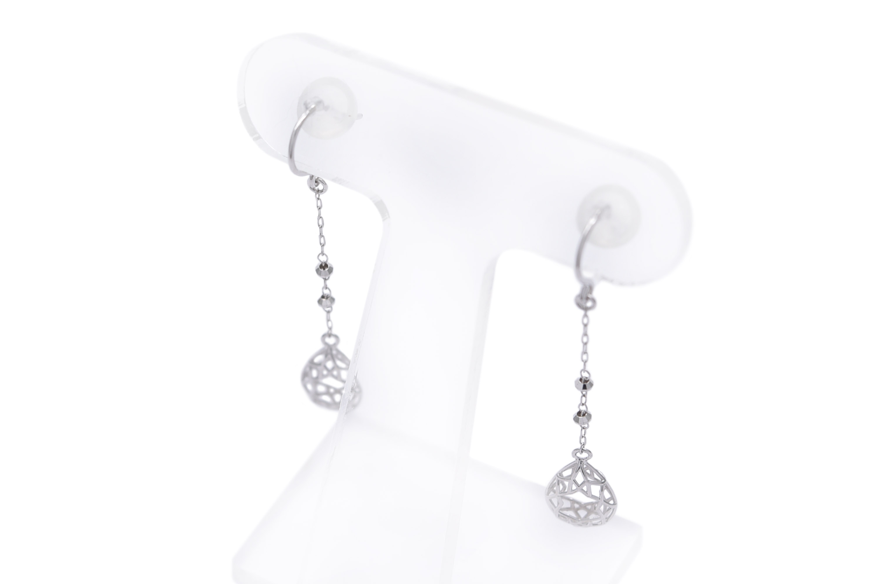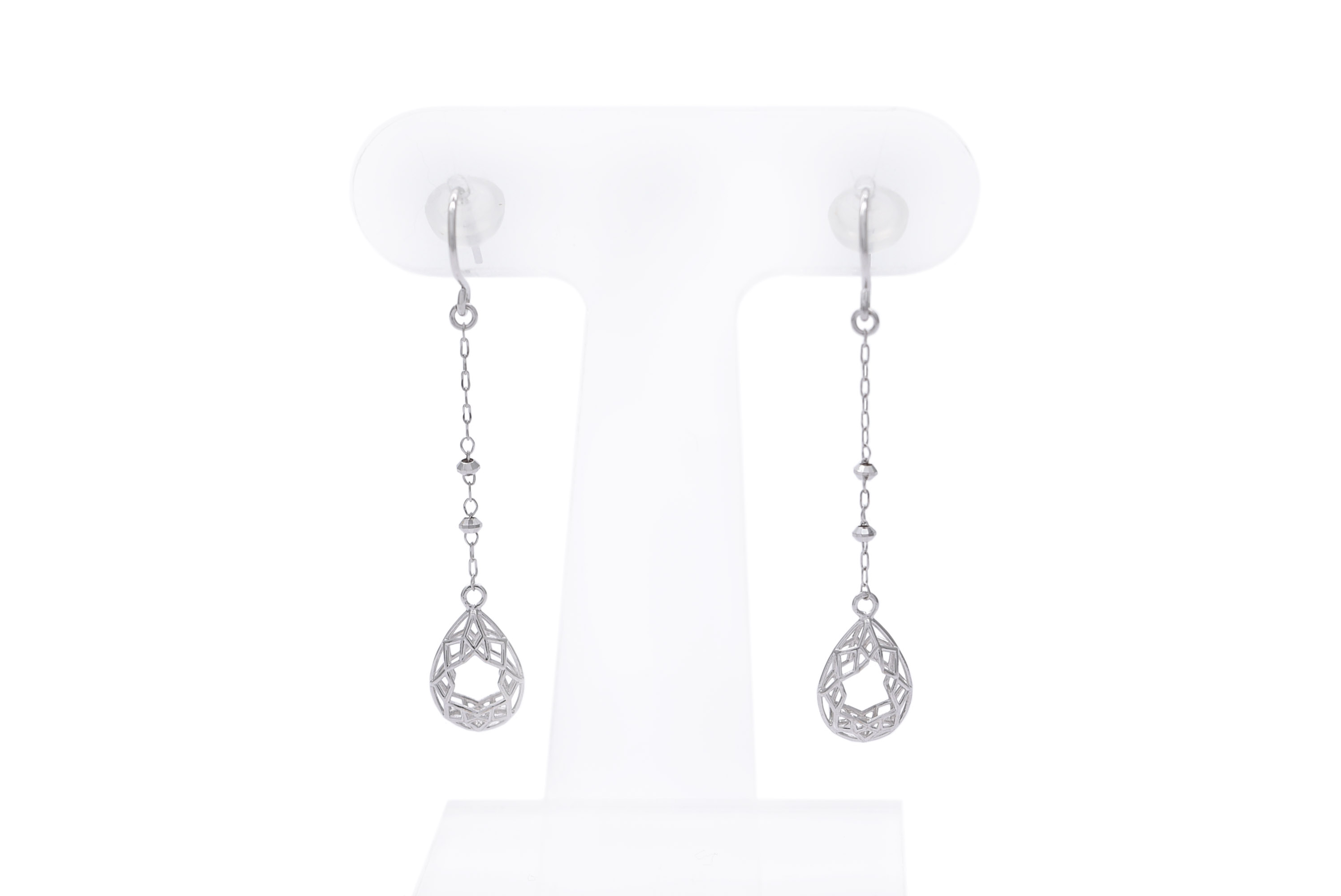 ホワイトゴールドを使用したピアスです。デザイン性のあるしずくモチーフが個性的でおしゃれなアイテムです。お出かけや女子会などにおすすめです。 #カジュアル#ドロップ#しずく#個性的#お出かけ#女子会