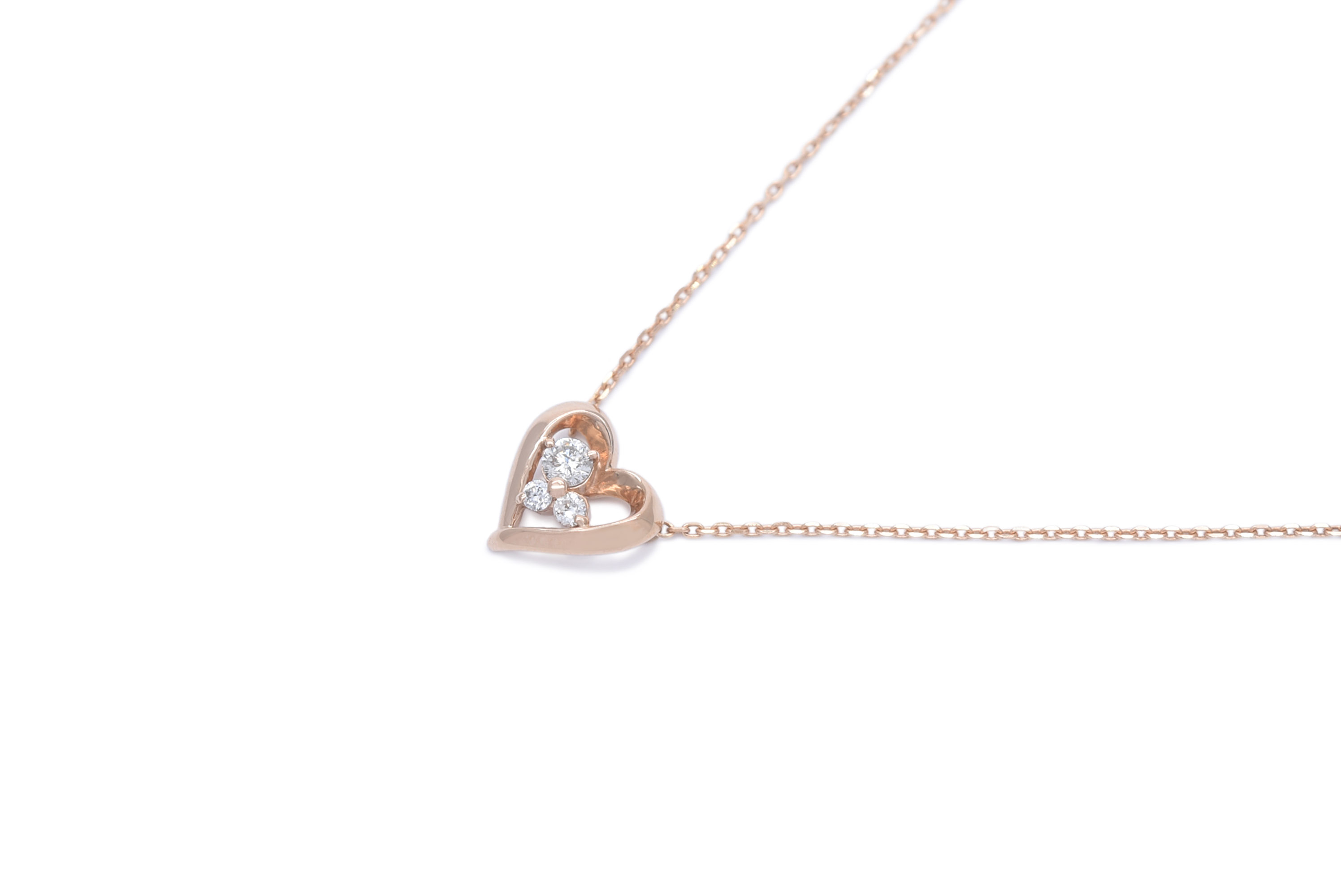 ダイヤモンドを使用した4℃(ヨンドシー)のペンダントネックレスです。ピンクゴールドのハートのモチーフがフェミニンで可愛らしい印象のアイテムです。 長さ40cm/やや短め/37cmにして使用可能 #ダイヤモンド#ブランド#ハート#可愛い#普段使い#お出かけ