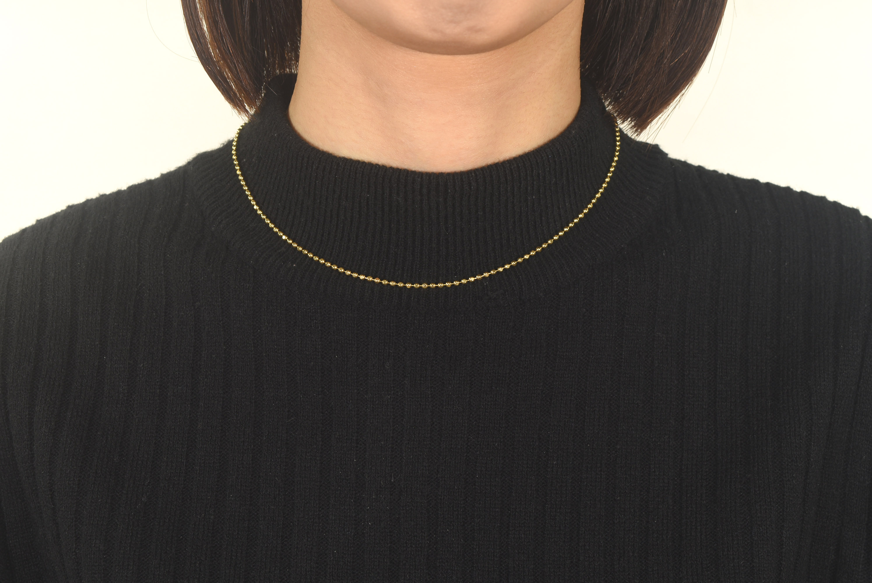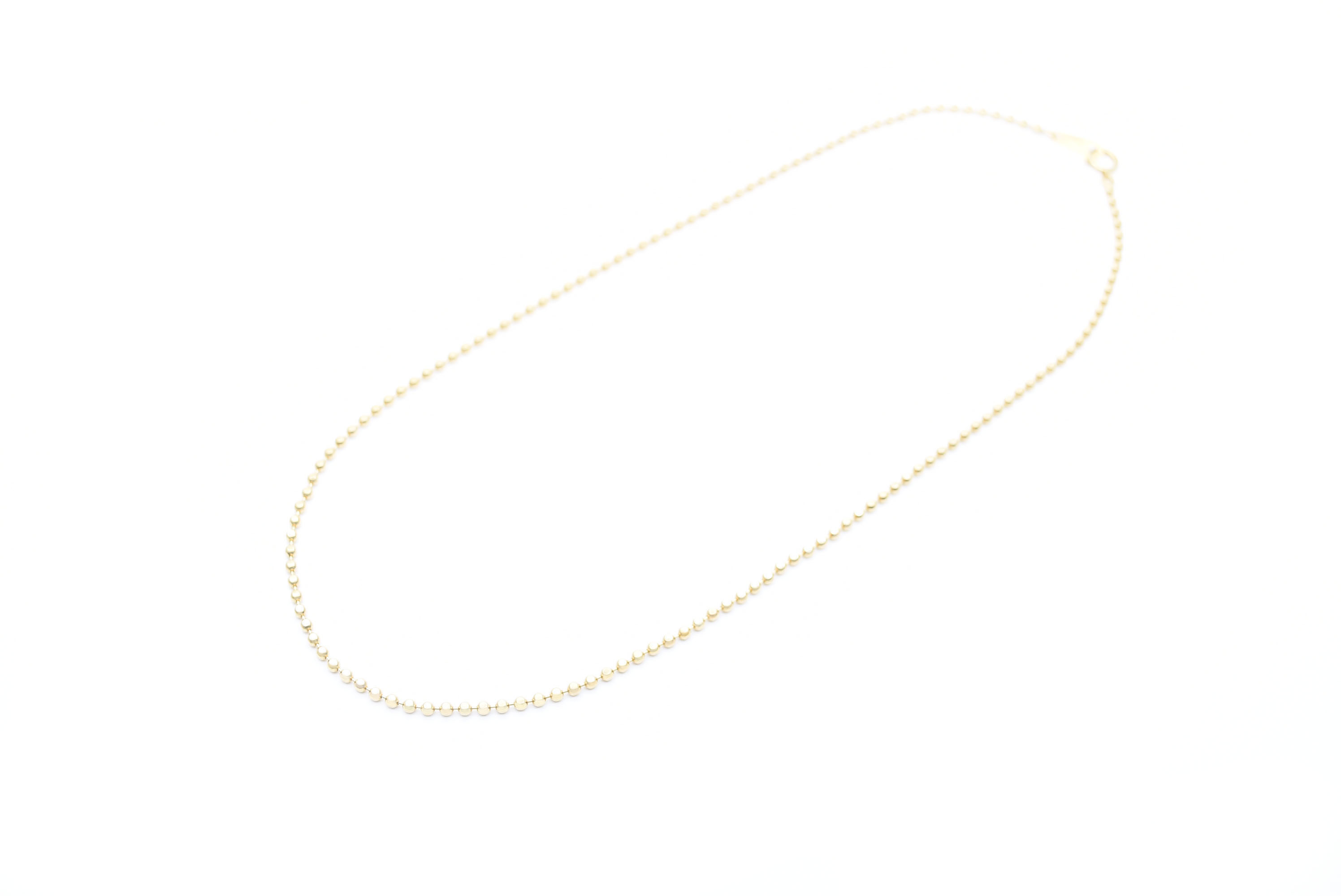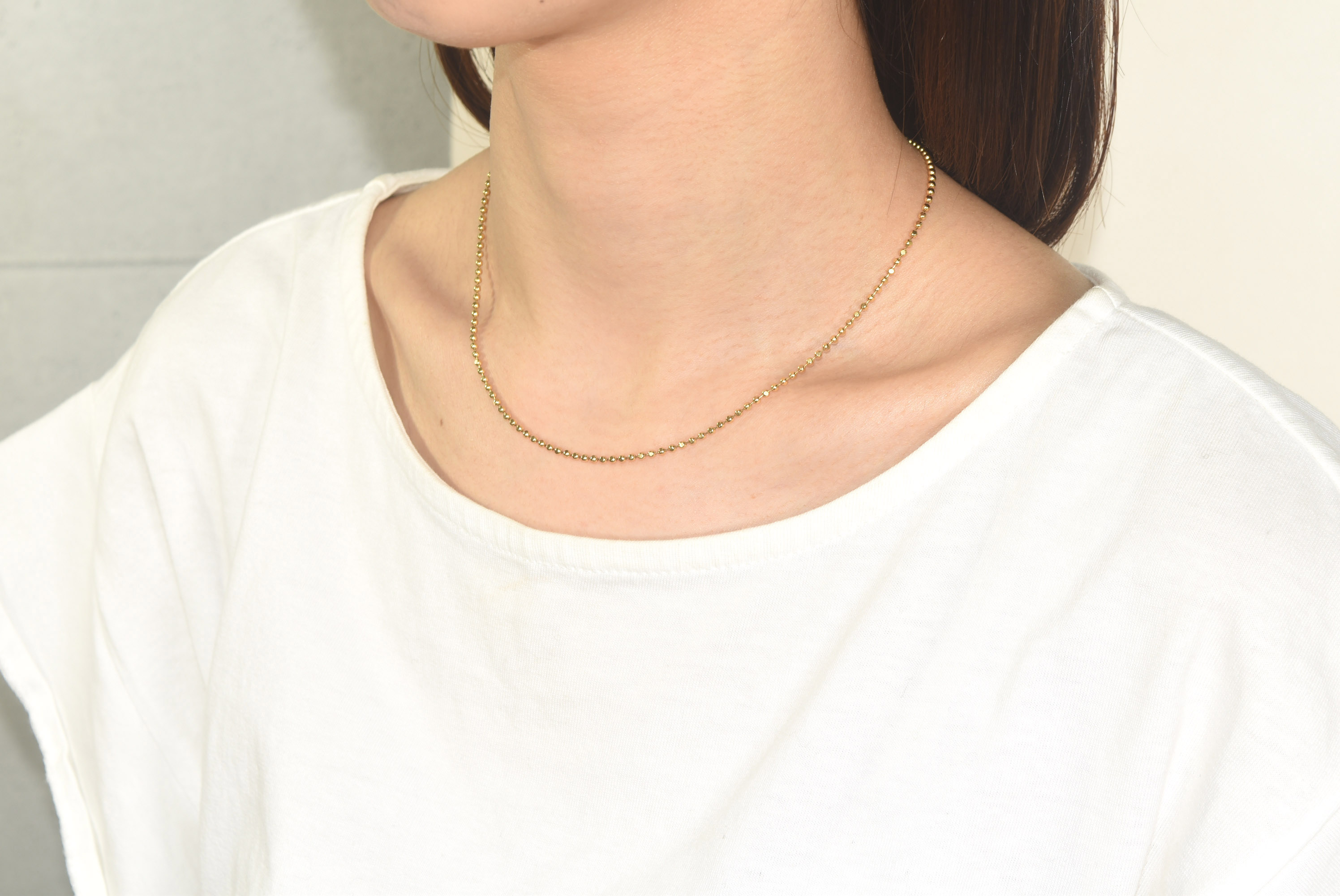 イエローゴールドを使用したネックレスです。シンプルなカットボールデザインです。チェーンのみのご使用でも素敵ですが、お手持ちのペンダントを通してもご使用いただけます。 長さ38cm/短め/長さ固定 #シンプル#カジュアル#普段使い#お出かけ