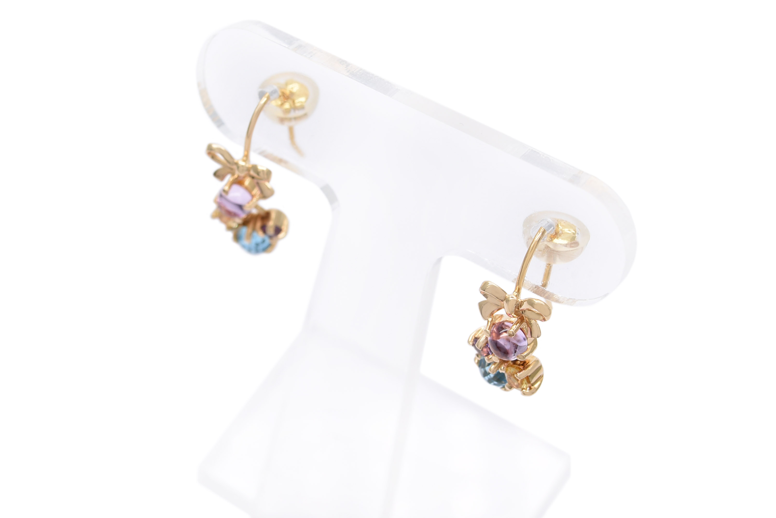 トルマリン・トパーズ・クォーツ・アメシストの4種類の石を使用したVENDOME AOYAMA(ヴァンドーム青山)のピアスです。リボンと4種類の色石の組み合わせが可愛いらしいデザインです。小さ目なピアスながらも華やかさがあるアイテムなのでお出かけや女子会などにおすすめです。 #マルチカラー#ブランド#可愛い#リボン#お出かけ#女子会